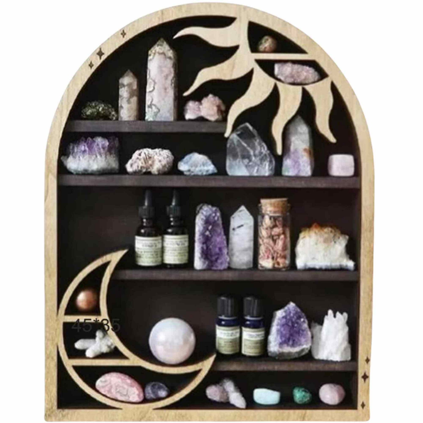 Raft cu design Soare si Luna: ATENTIE: Cristalele nu sunt incluse! Aceasta piesa de mobilier este o combinatie eleganta intre functionalitate si estetica, fiind ideala pentru iubitorii de decoruri gotice sau moderne. Designul unic Soare si Luna va atrage toate privirile si va adauga un strop de mister si eleganta oricarei incaperi;