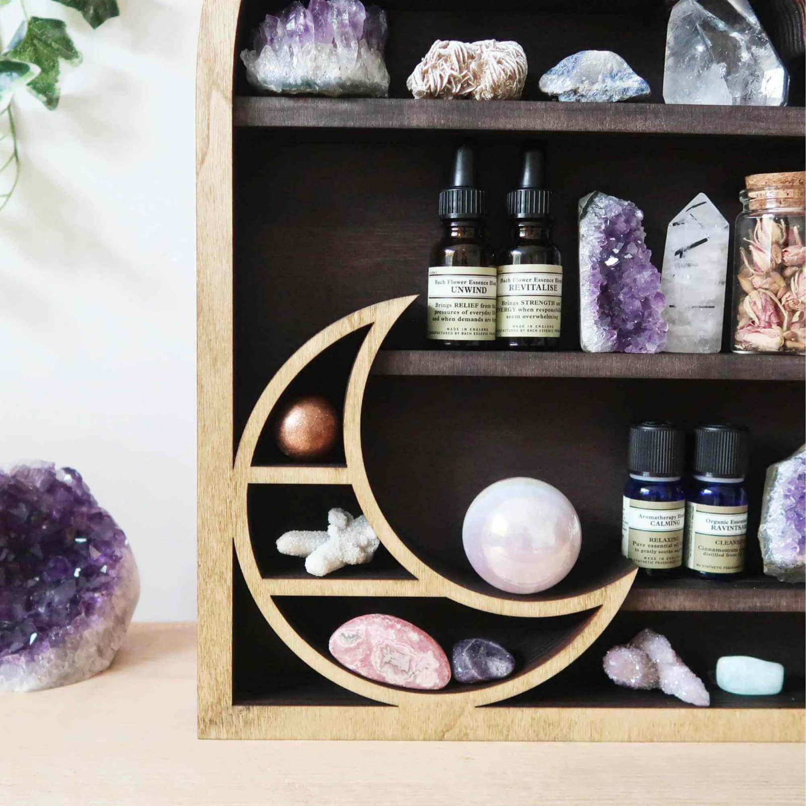 • Calitate si durabilitate: Realizat din lemn de calitate superioara, acest raft ofera o baza robusta si eleganta pentru colectiile tale de cristale sau uleiuri esentiale. Fie ca il folosesti ca raft pentru condimente sau ca etalaj pentru diverse figurine, produsul este fabricat pentru a rezista in timp;