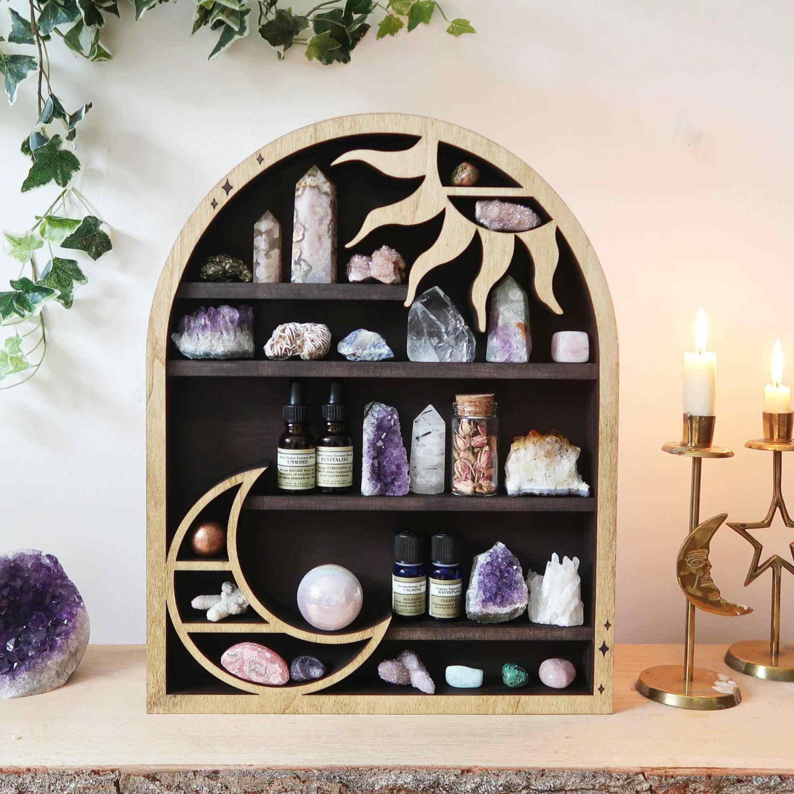 • Flexibilitate in utilizare: Imbunatateste orice incapere cu un etalaj care este unic, atragator si complet functional. Raftul cu design Soare si Luna poate fi folosit pentru a expune o varietate de obiecte, de la cristale si uleiuri esentiale, la figurine sau condimente.
