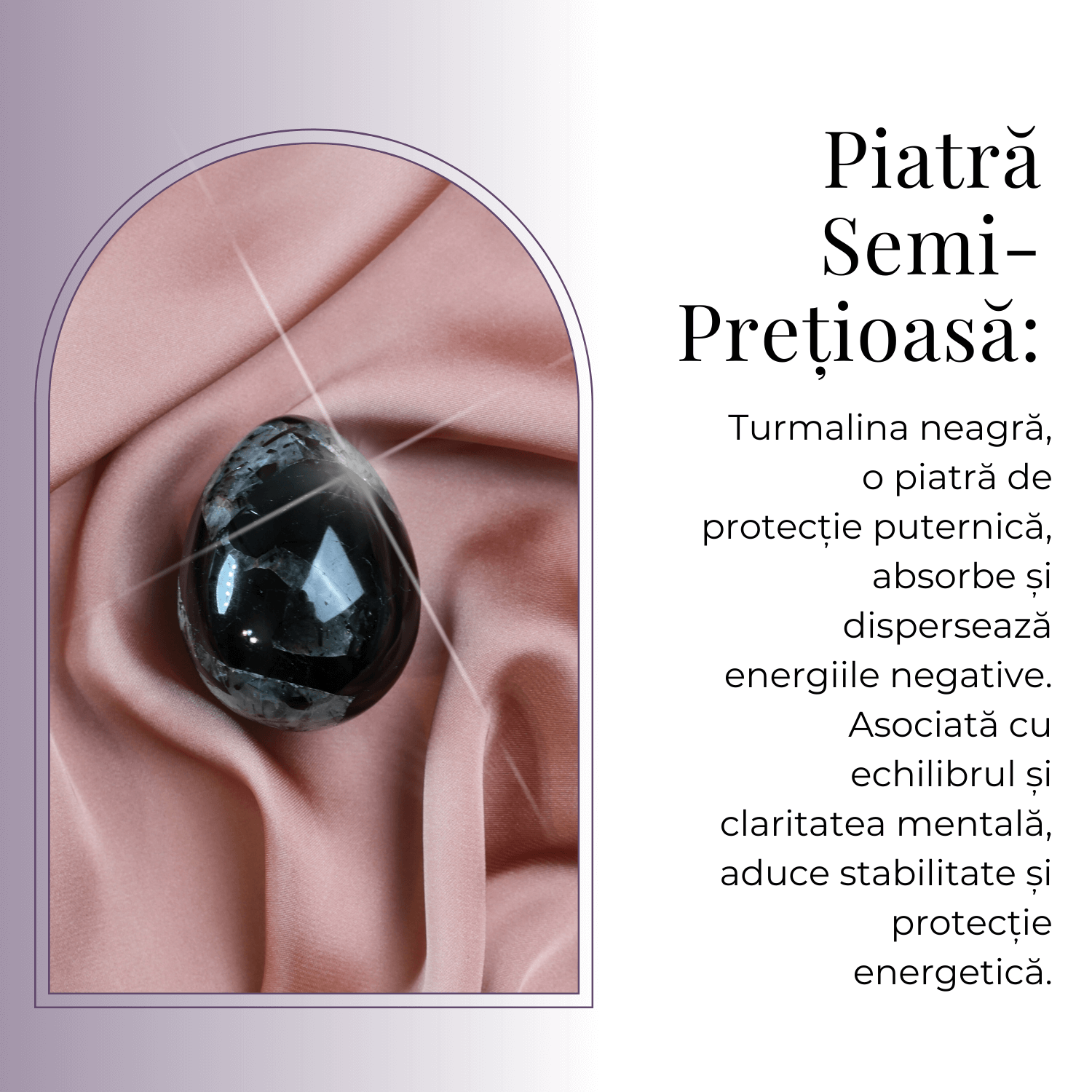 - Design Energetic: Fiecare ou prezintă textura unică și culorile intense ale turmalinei negre.