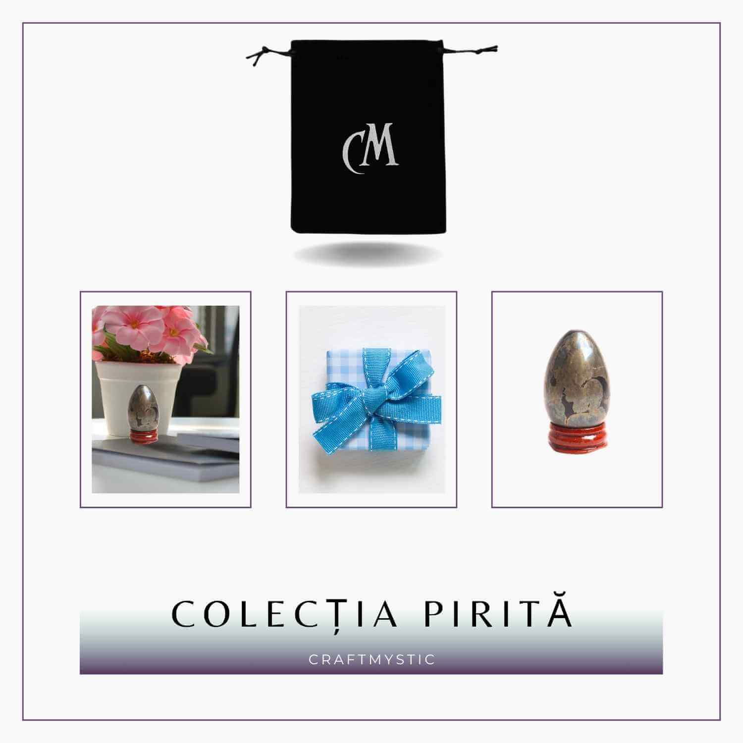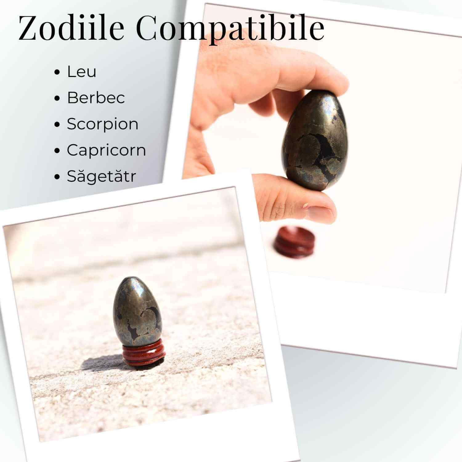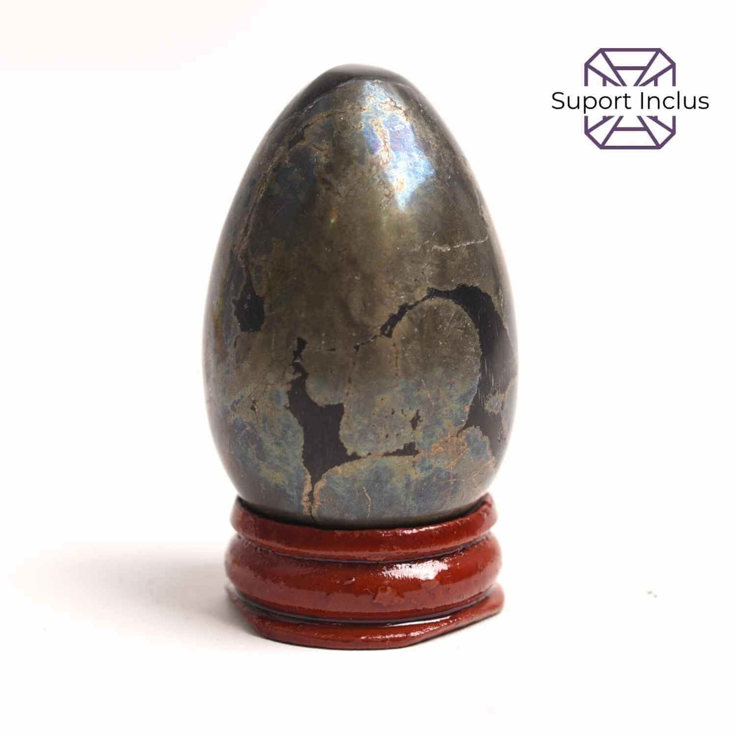 Achiziționează acum Ou Pirita 50mm cu suport inclus și atrage protecția și abundența în viața ta!