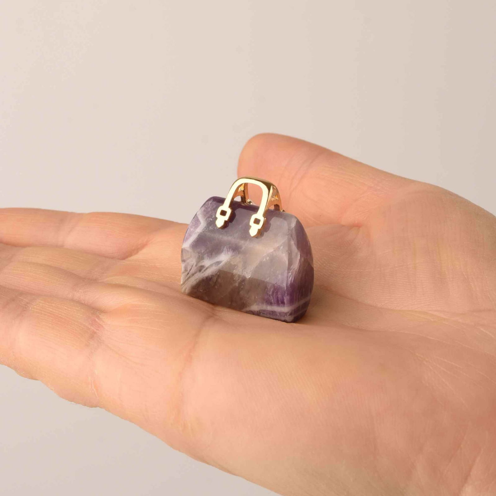 1 x PANDANTIVE 2.5 CM DIN PIATRA NATURALA AMETIST, IN FORMA DE GEANTA - ACCESORII DIN PIATRA PENTRU REALIZAREA DE BIJUTERII, CERCEI, COLIER