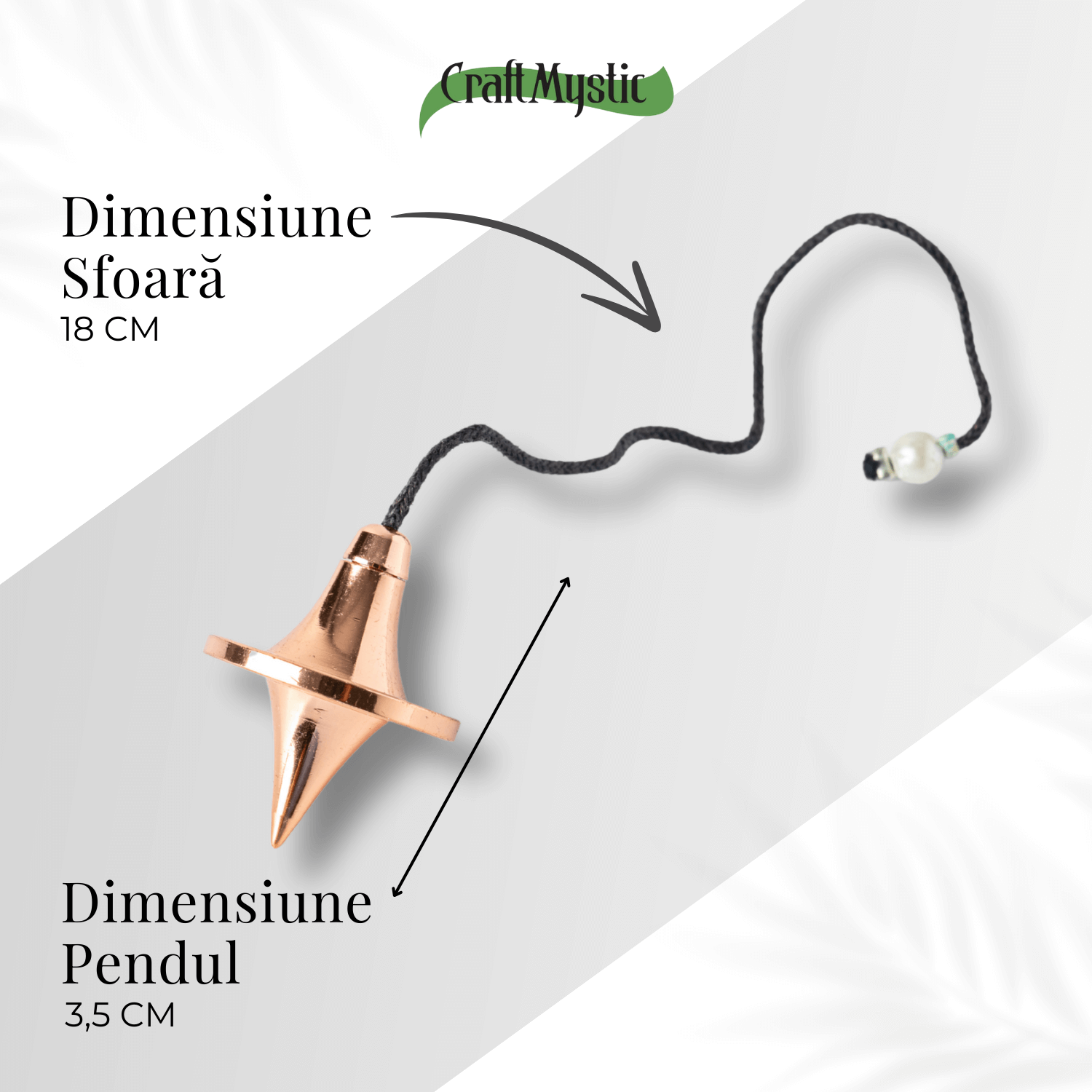 Acest pendul din cupru, cu forma sa conica, este simbol al energiei directionate si al conexiunii dintre planul material si cel spiritual. Forma ascutita concentreaza fluxul energetic, in timp ce metalul cupru amplifica vitalitatea, protectia si claritatea. Un instrument sacru, creat pentru echilibru interior si ghidare in ritualurile spirituale.