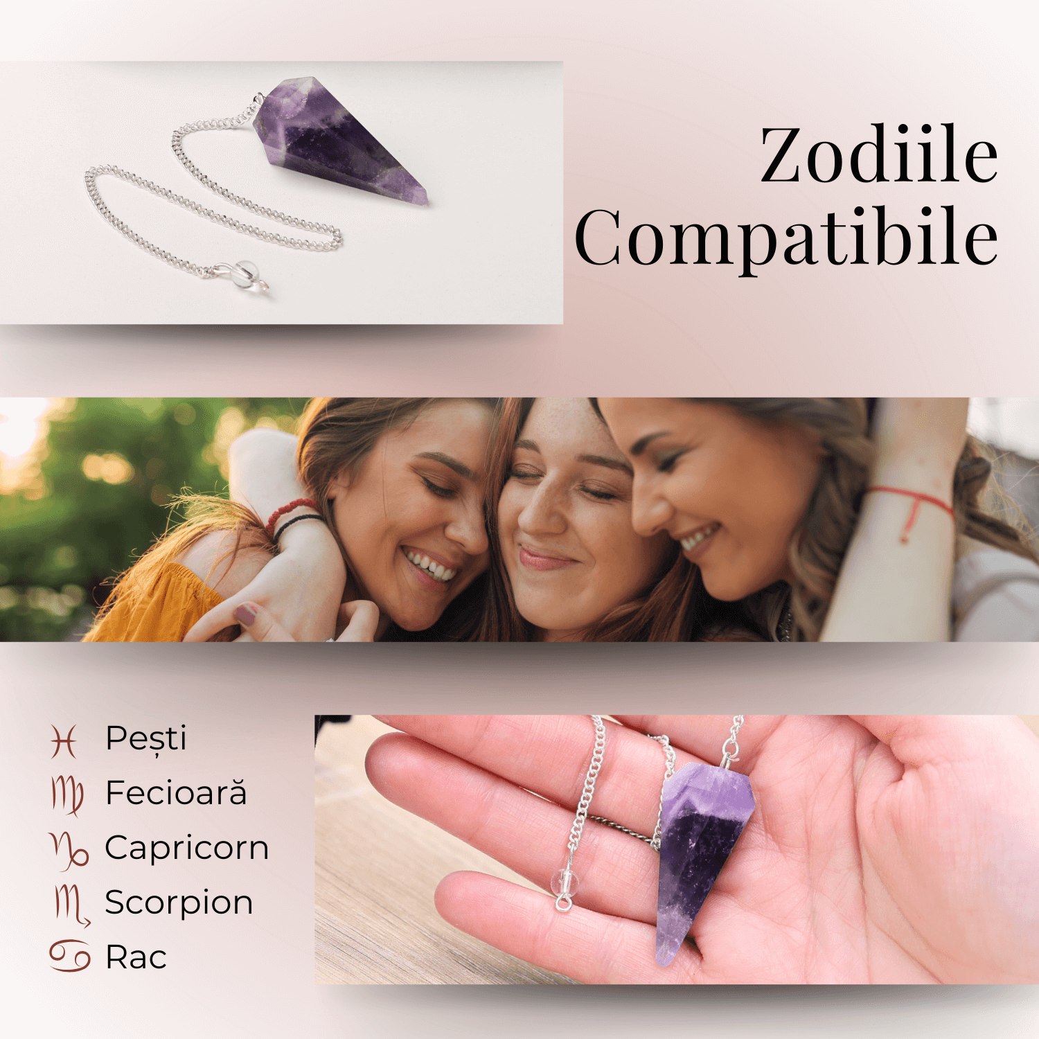 - Compatibilitate Zodiacala: Ametistul este considerat benefic pentru zodiile Pesti, Capricorn si Varsator.