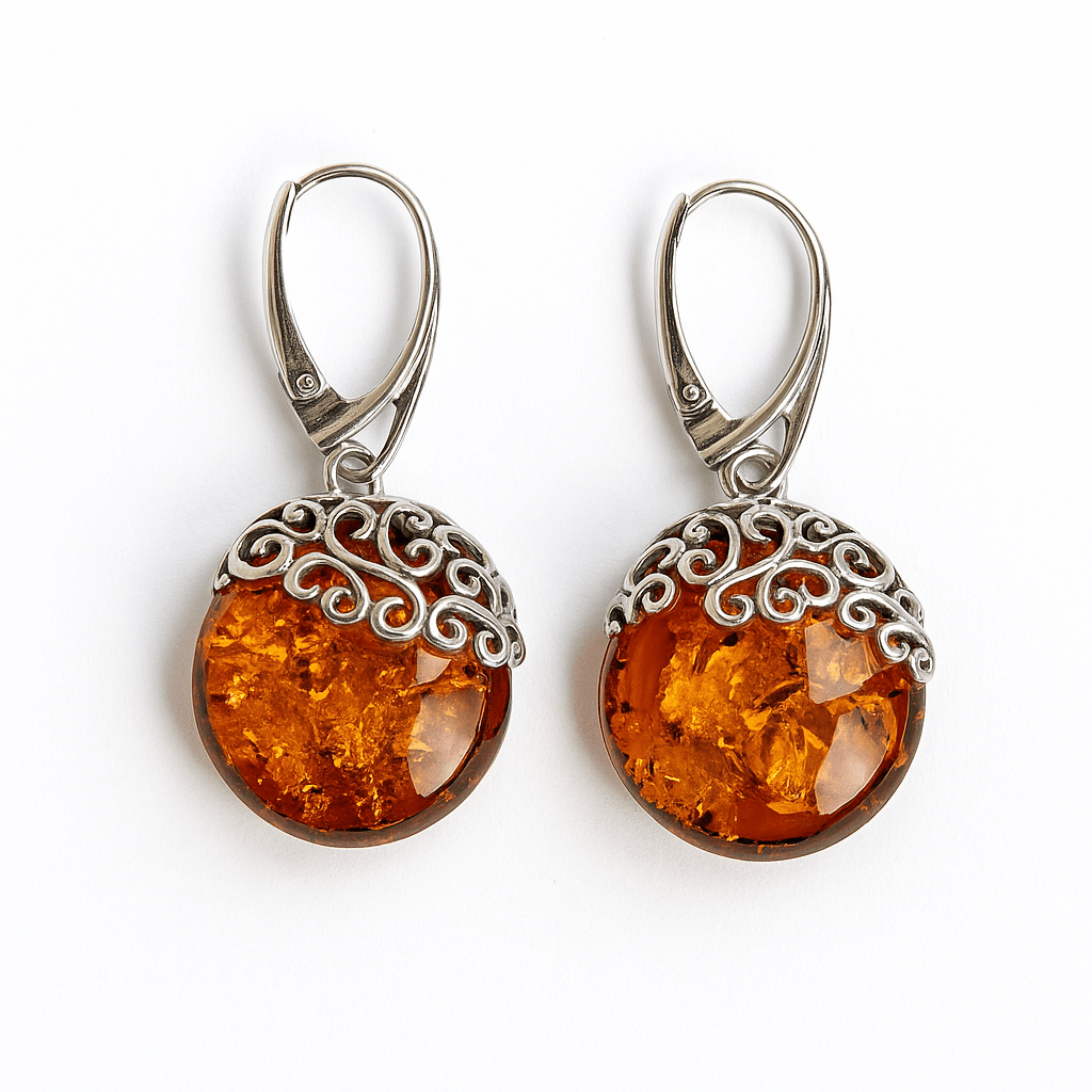 ✔ Fiecare pereche este unica – nuante si incluziuni specifice chihlimbarului natural