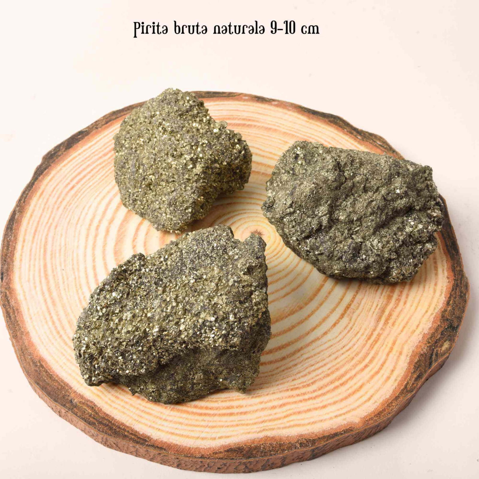 Fiecare piatra de pirita bruta este unica, avand propria sa forma, dimensiune si nuante de culoare care difera de cele prezentate in imagine, accentuand caracterul natural si autentic al produsului.