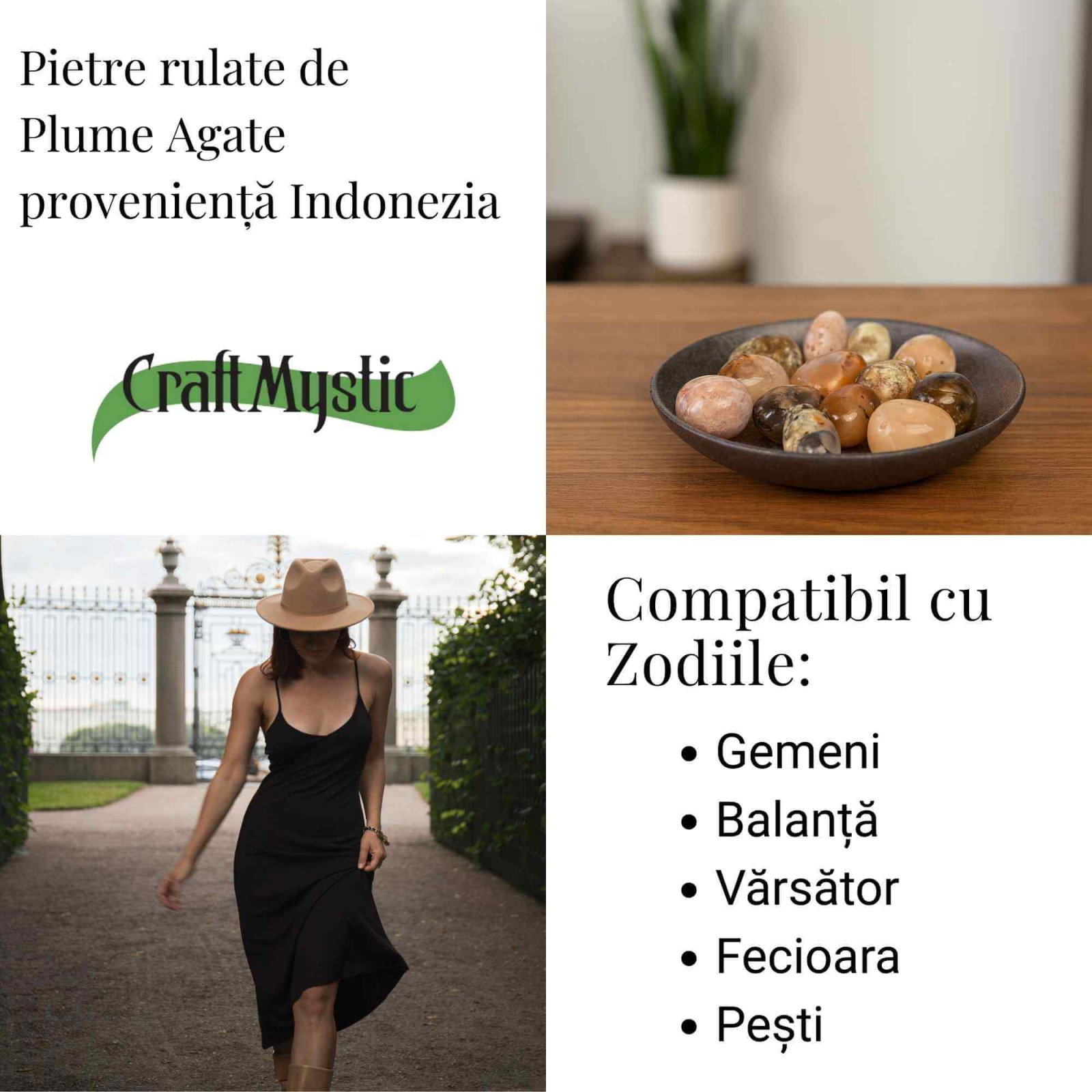 Plume Agate este o piatră ideală pentru echilibrul sufletului, claritate intuitivă și creativitate, fiind un companion perfect în momentele de introspecție, meditație și inspirație.