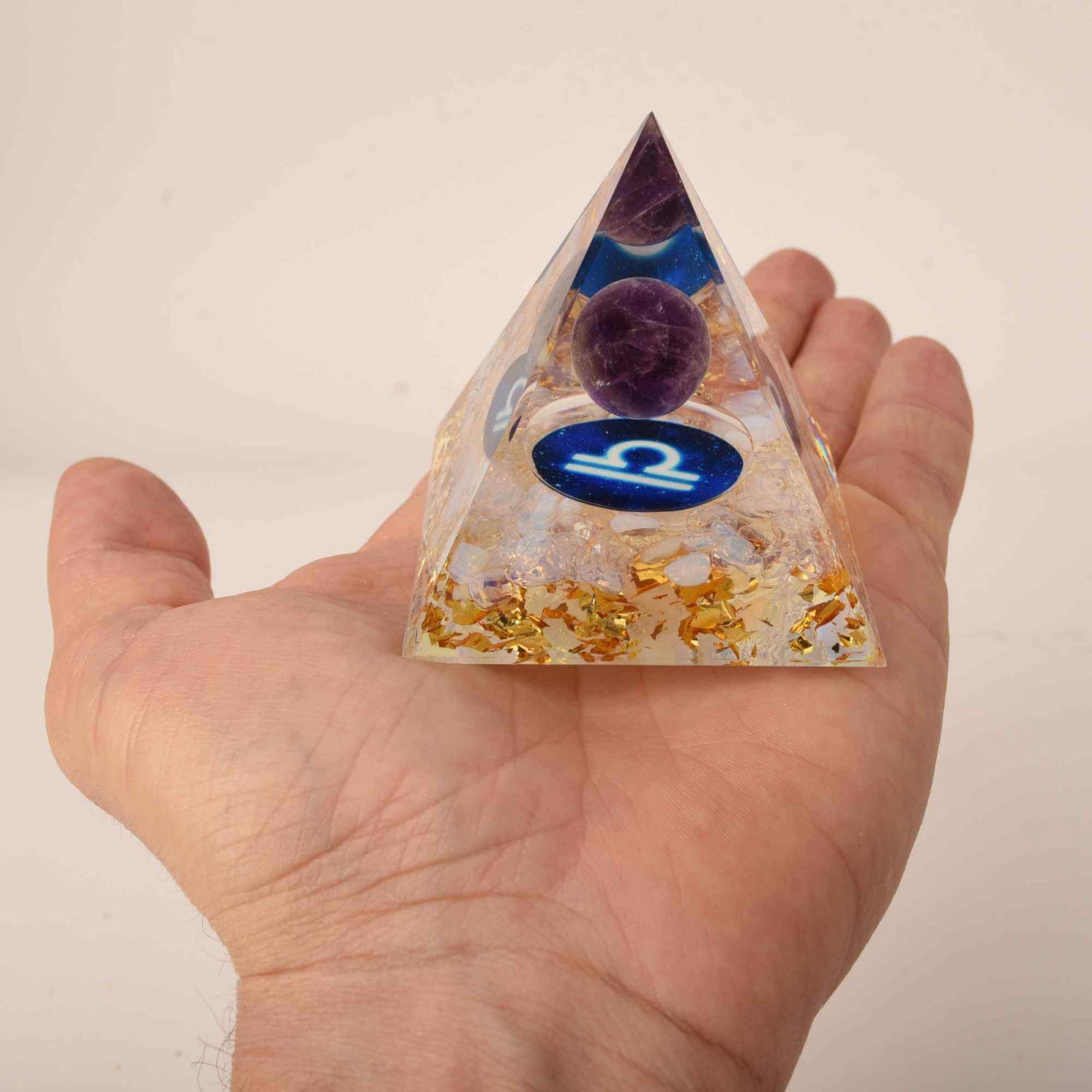 Piramida de Energie Orgonica 6 cm cu Cristale de Vindecare specifice Zodiei Balanta pentru Relaxare, Meditatie si Ornament