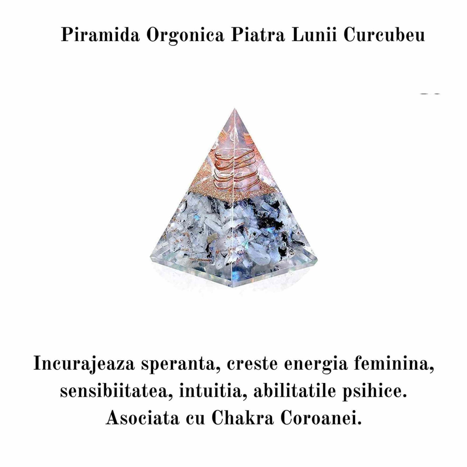 - Puterea Vietii prin Orgonit: Piramida Orgonica, cunoscuta si sub denumirea de 'chi' sau 'prana' in diferite culturi, este fundamentul tuturor formelor de viata si energie de pe aceasta planeta. Noua noastra piramida inspirationala Orgonita, confectionata din piatra lunii curcubeu, va poate aduce succes si prosperitate, echilibrand simultan energiile si aliniind chakrele intr-un mod ideal;