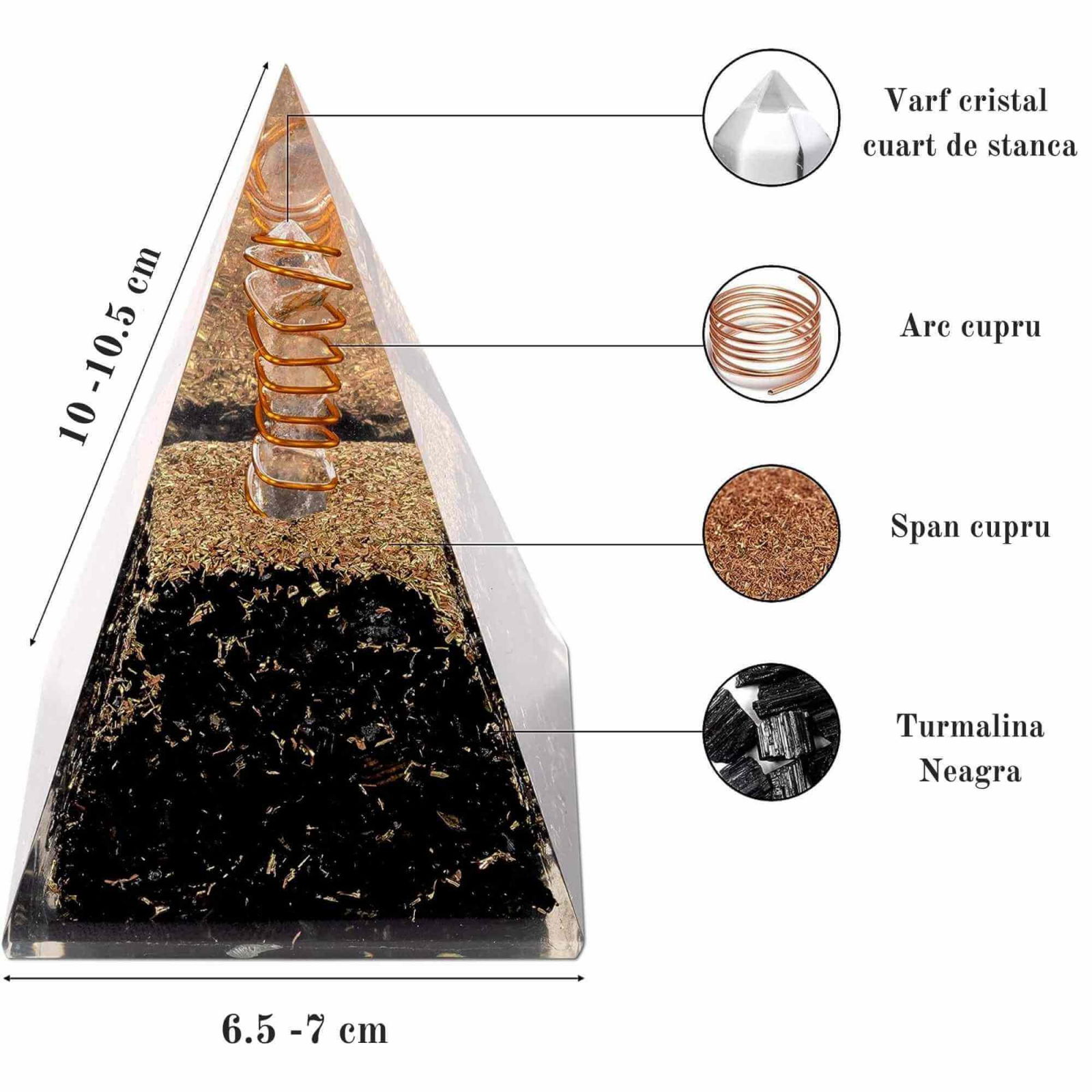 - Materiale Certificate 100% Autentice: Fabricata din turmalina neagra, cupru, rasina, puncte de cristal si alte pietre cu vibratii specifice, aceasta piramida Orgonita este un condensat de putere si autenticitate. Fiecare componenta a fost aleasa cu grija pentru a va oferi cele mai inalte niveluri de calitate si eficacitate;