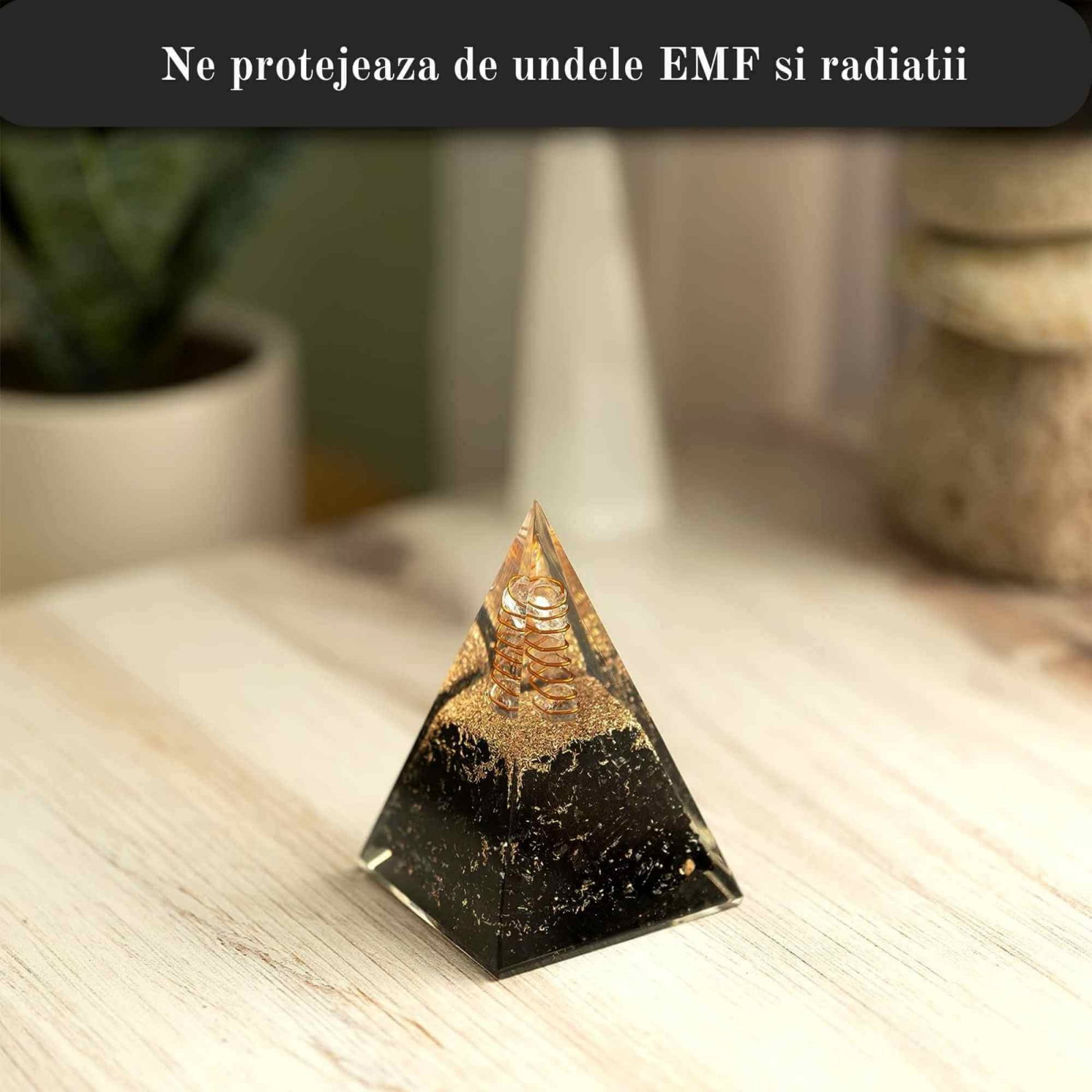 - Protectie impotriva E-misiilor: Aceasta piramida Orgonica blocheaza eficient emisiile electrice daunatoare provenite de la calculatoare, telefoane mobile si alte dispozitive electronice. Acest lucru va ofera un scut suplimentar impotriva energiei negative si a stresului asociat cu utilizarea tehnologiei;