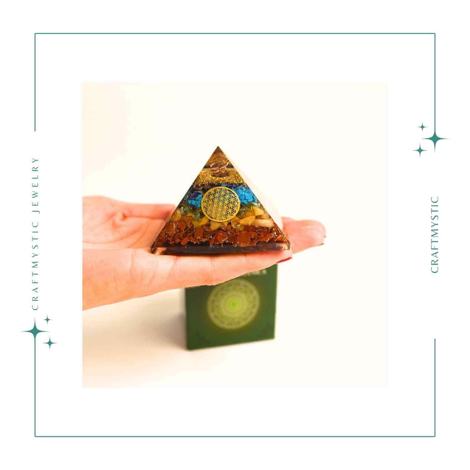 Piramida orgonică cu 7 chakre și simbolul Floarea Vieții este un instrument puternic pentru echilibrarea energetică și protecție. Realizată manual din materiale naturale, această piesă combină energia pietrelor semiprețioase cu proprietățile protectoare ale orgonului.