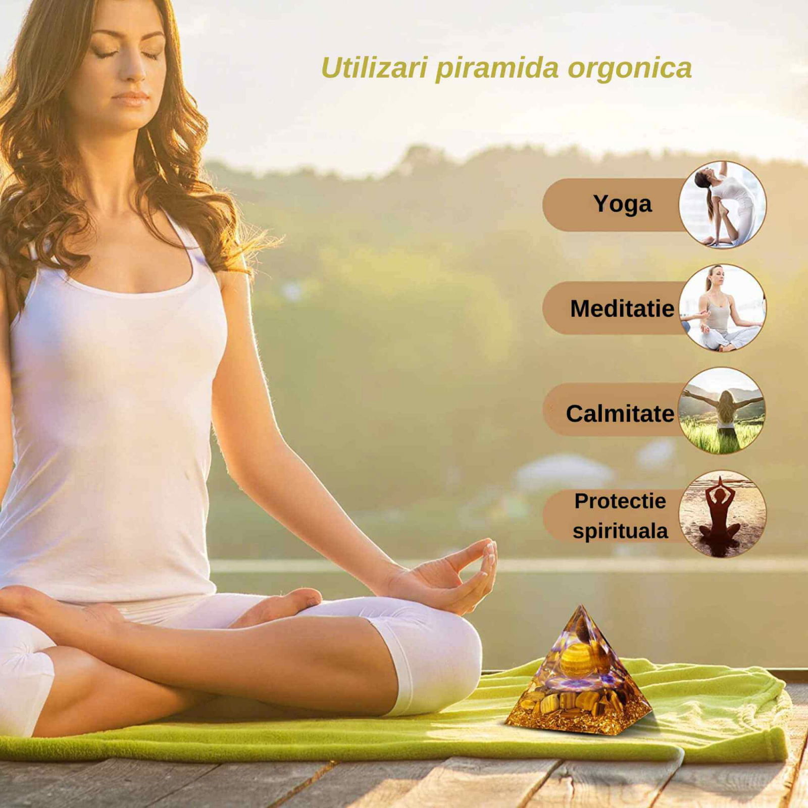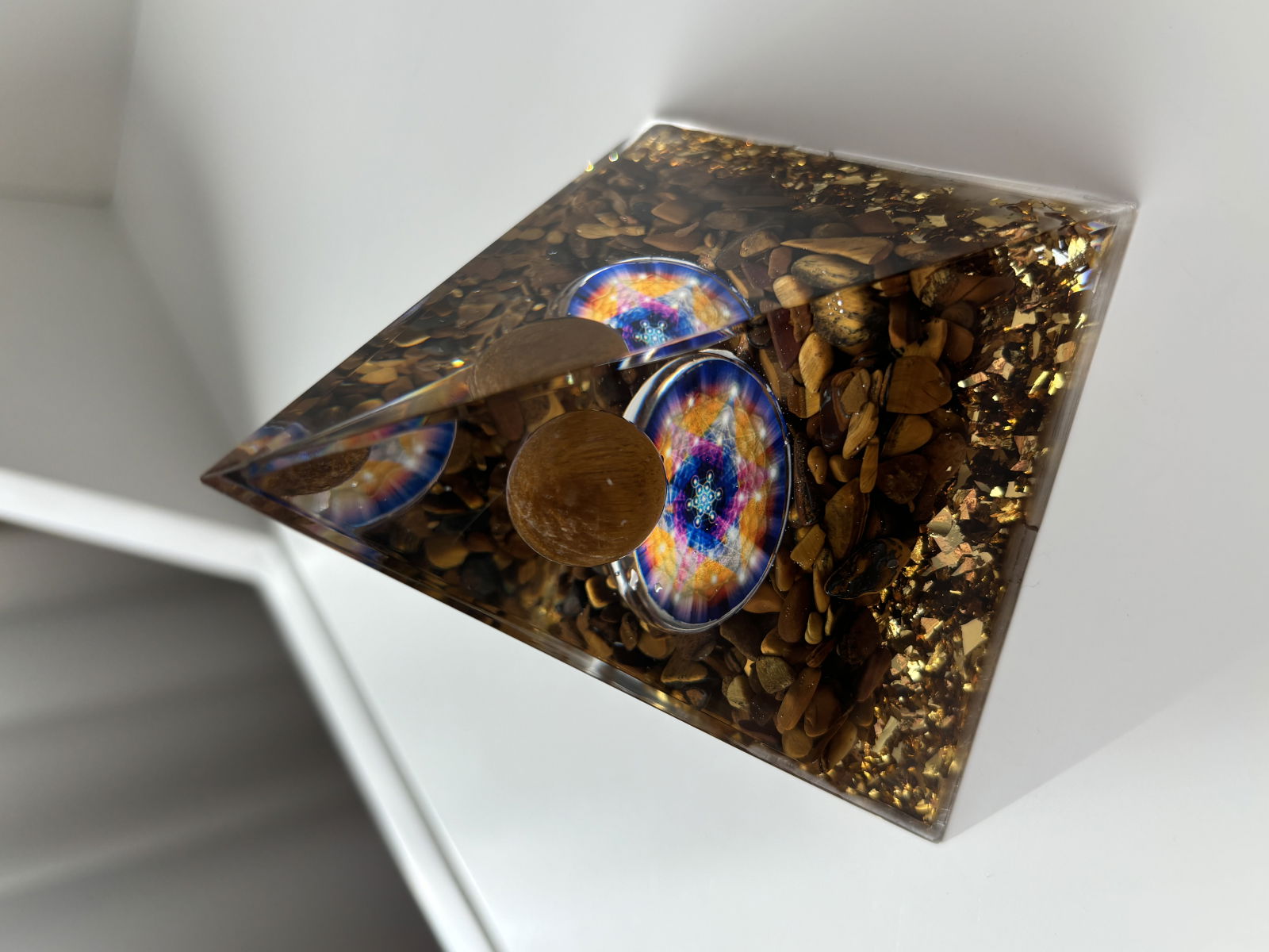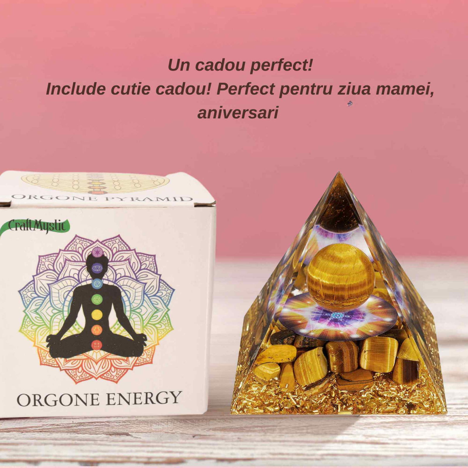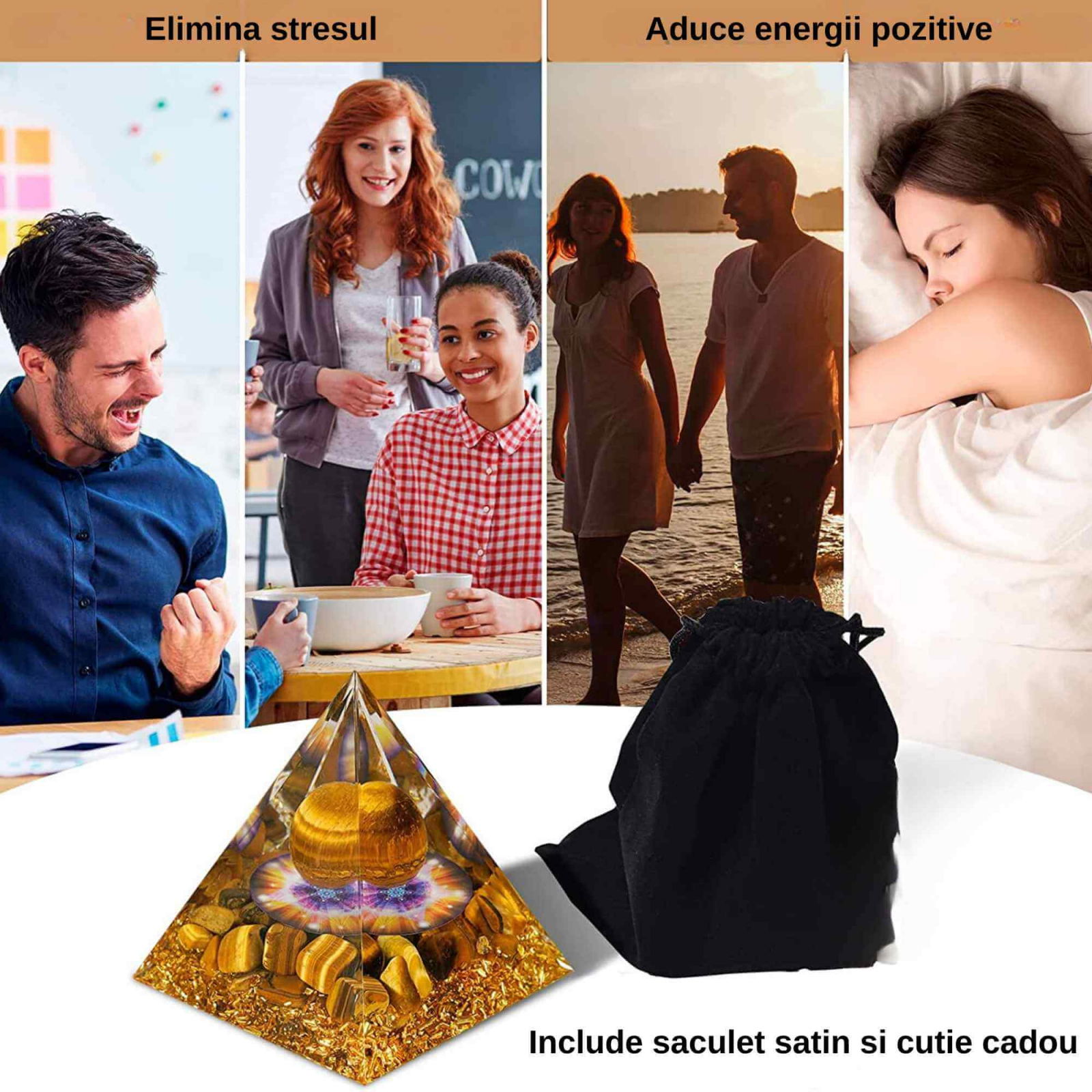 Piramida Orgonica 8 cm cu Sfera si cristale Ochi de Tigru: Atrage Abundenta si Energie Pozitiva in Viata Ta
