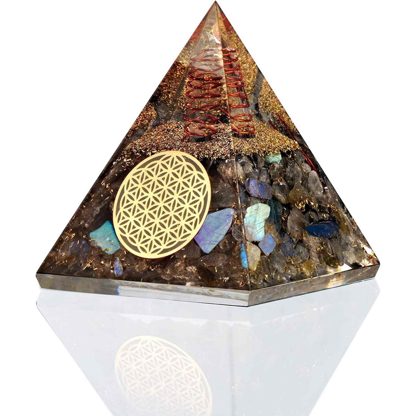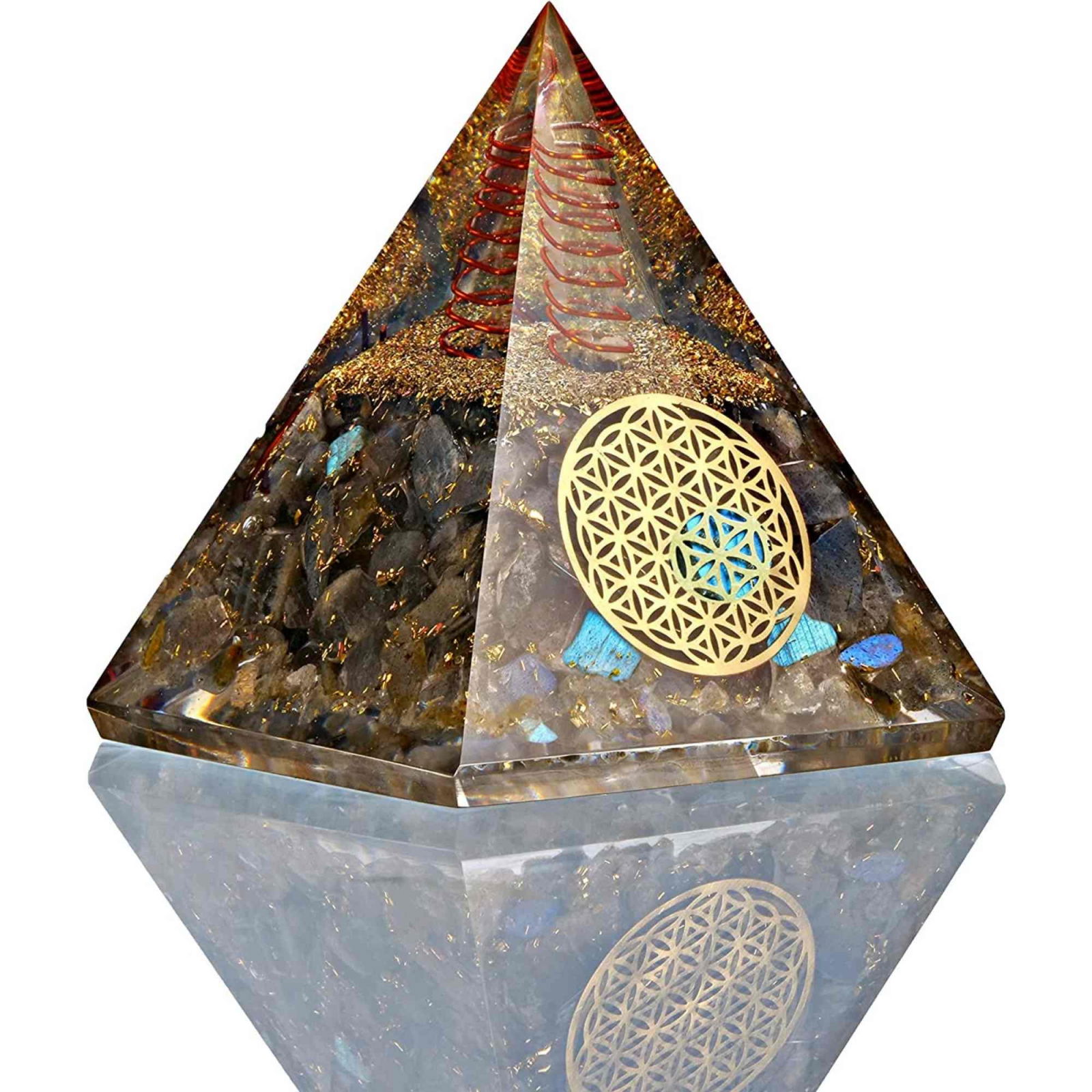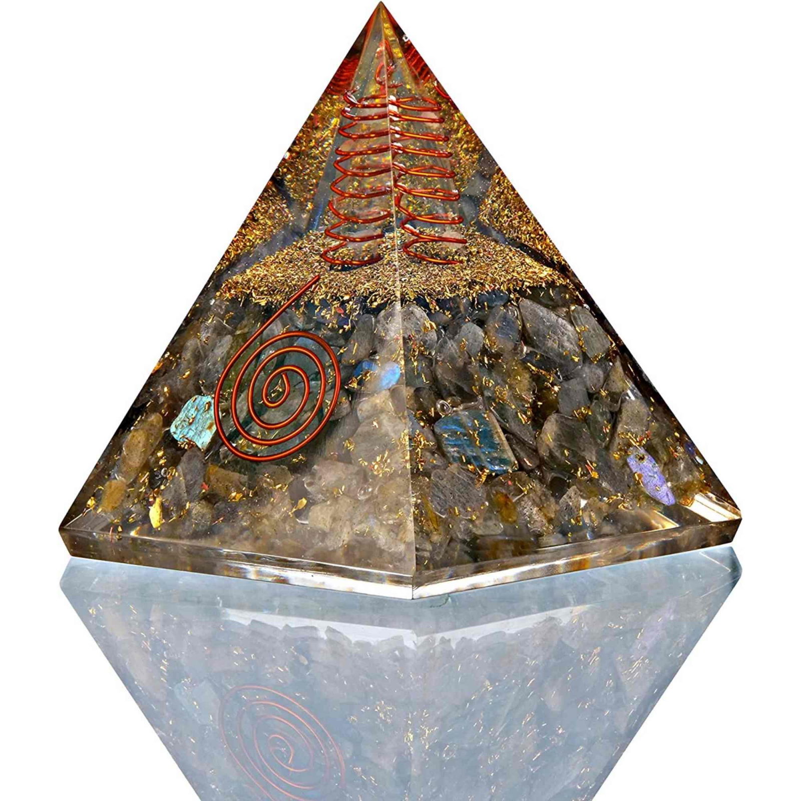 • Elementul principal al acestei piramide este labradoritul, aceasta piatra va ajuta sa va dezvoltati spiritual si emotional. Cristalul de piatra pretioasa este util in timpul meditatiei pentru a va stimula abilitatile intuitive si psihice, pentru a va conecta cu ghizii spirituali si pentru a va aminti vietile trecute;