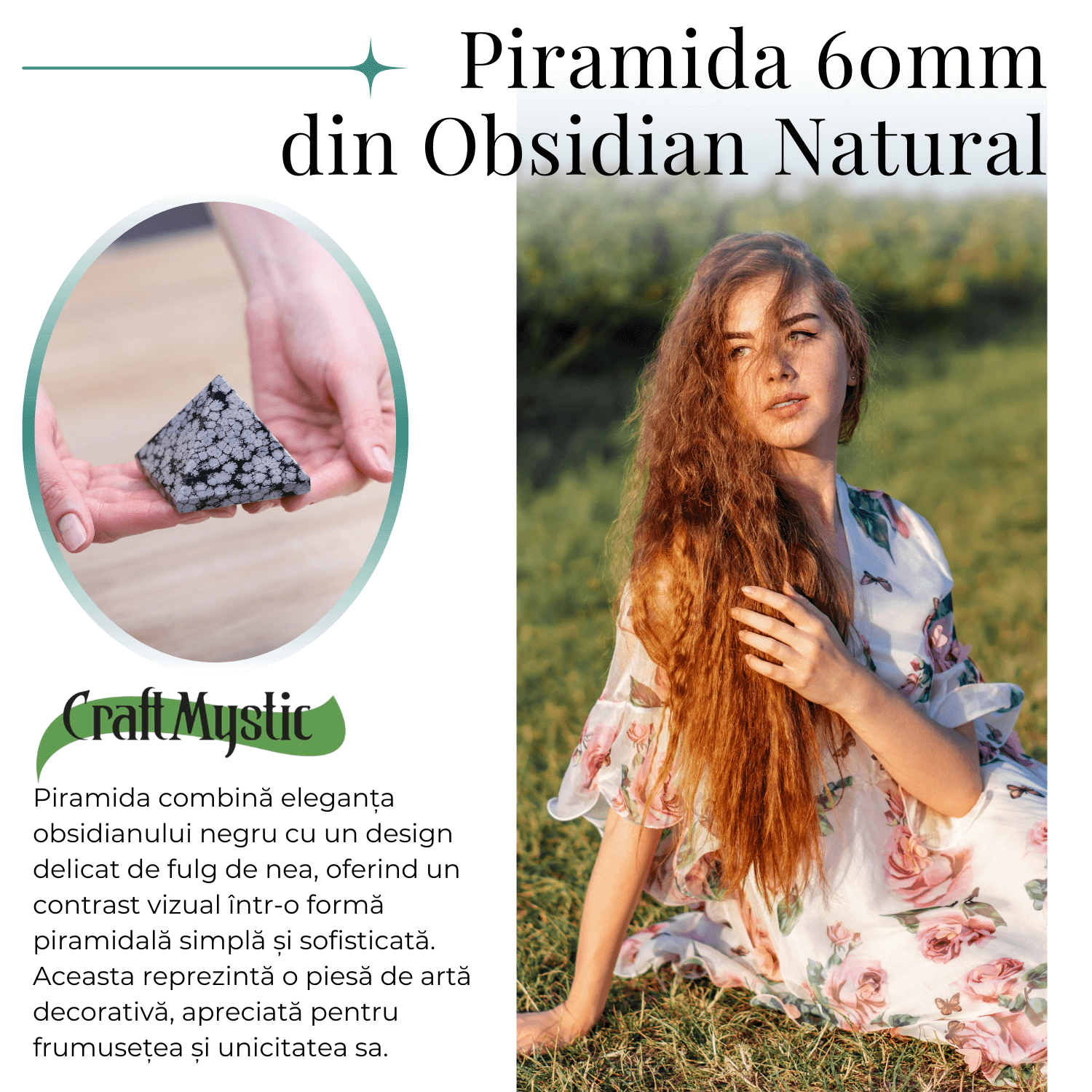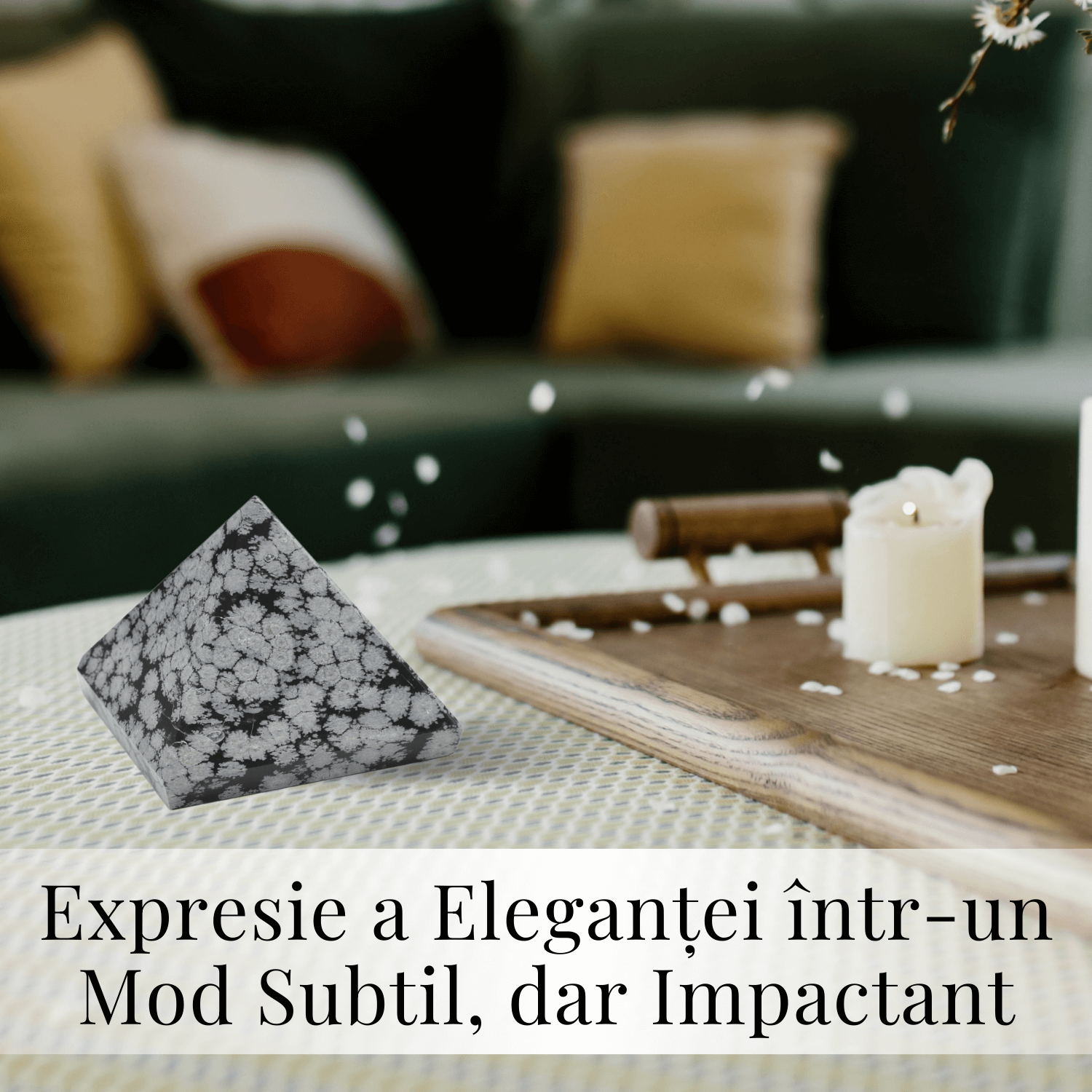 - Design Unic: Cu forma și culoarea sa distinctă, fiecare piramidă are un caracter unic, marcând frumusețea naturală a Obsidianului.