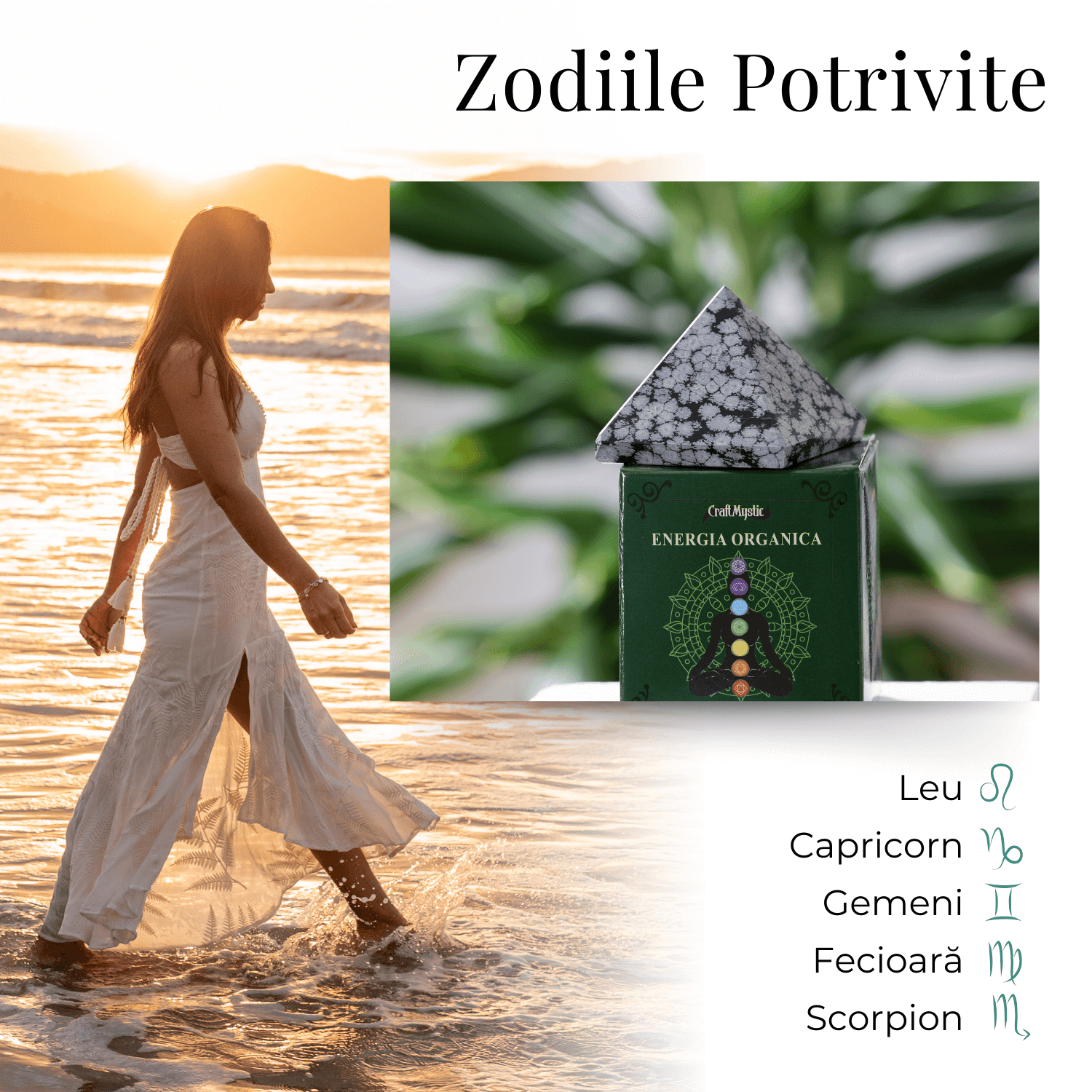 - Beneficiile Obsidianului Fulg de Nea: Recunoscut pentru proprietățile sale de protecție și purificare, acest tip de Obsidian este ideal pentru zodiile Scorpion, Capricorn și Săgetător.