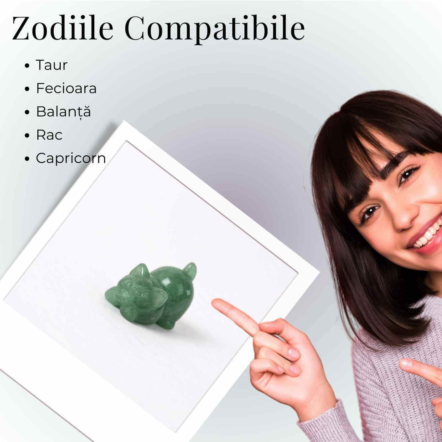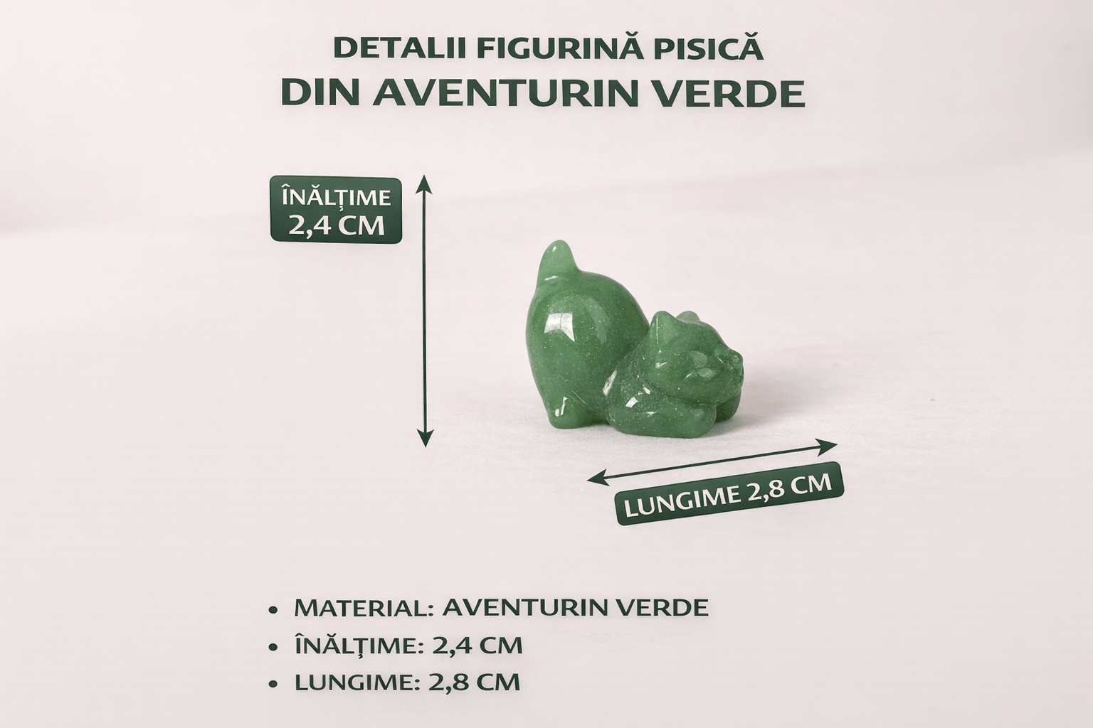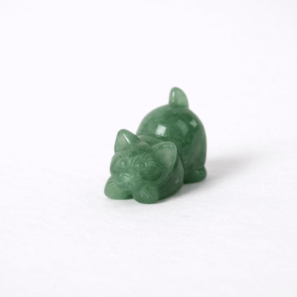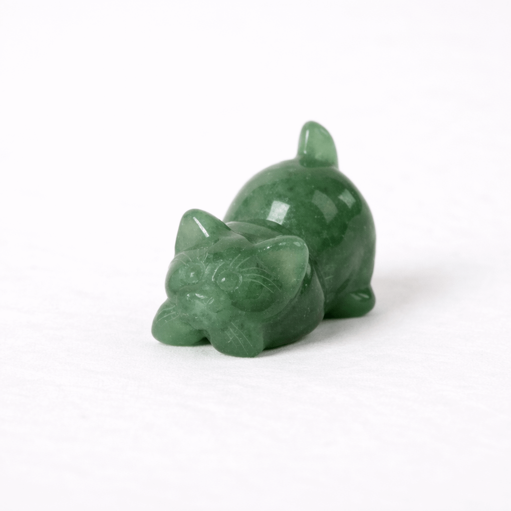 Această pisicuță delicat sculptată din aventurin verde poartă energia norocului blând și a liniștii interioare. Forma de pisică este un simbol ancestral al protecției, intuiției și independenței, fiind considerată un talisman care atrage energiile pozitive și ține la distanță influențele negative. Aventurinul verde, piatra oportunităților și a inimii deschise, susține echilibrul emoțional și aduce armonie în viața de zi cu zi. Împreună, forma și piatra creează un mic gardian al stării de bine.