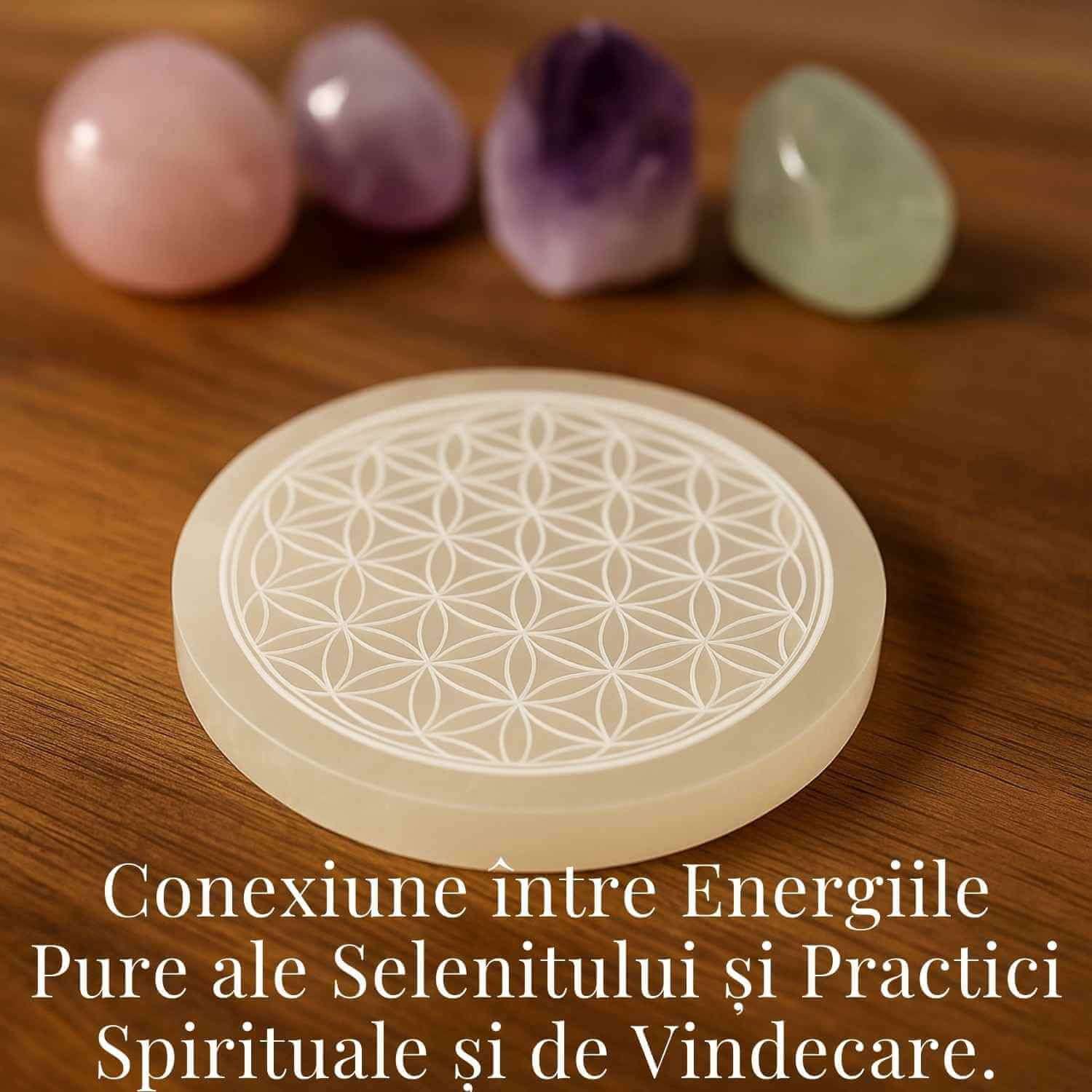 Aseaza-ti cristalele, intentiile si energia pe aceasta placa de lumina. Selenitul si Floarea Vietii te sustin sa-ti regasesti pacea interioara, claritatea si armonia divina a sufletului tau.