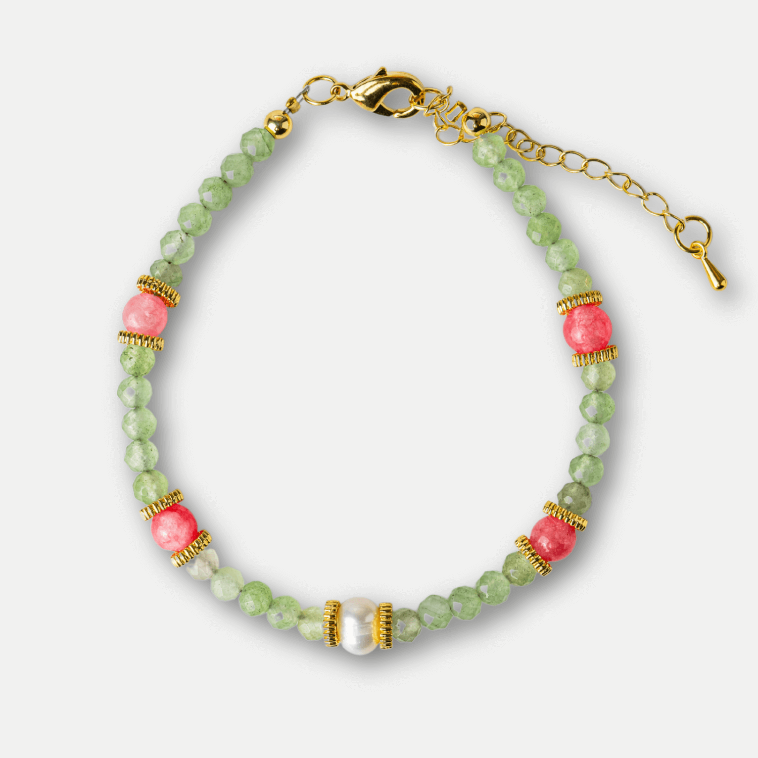 Perla și cristalul căpșună stimulează iubirea de sine, feminitatea sacră, relațiile armonioase și compasiunea.