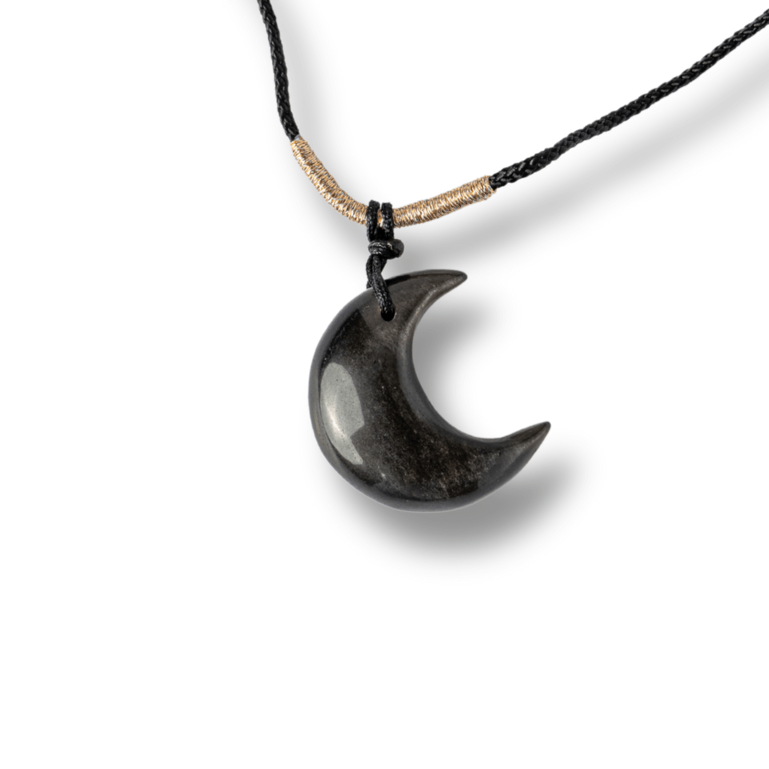 Obsidianul de gheață este o piatră puternică a protecției și clarității. Purtat ca semilună, simbol al feminității și intuiției, devine un talisman care te ghidează în momente de schimbare și transformare, protejându-te și aducându-ți liniște interioară.
