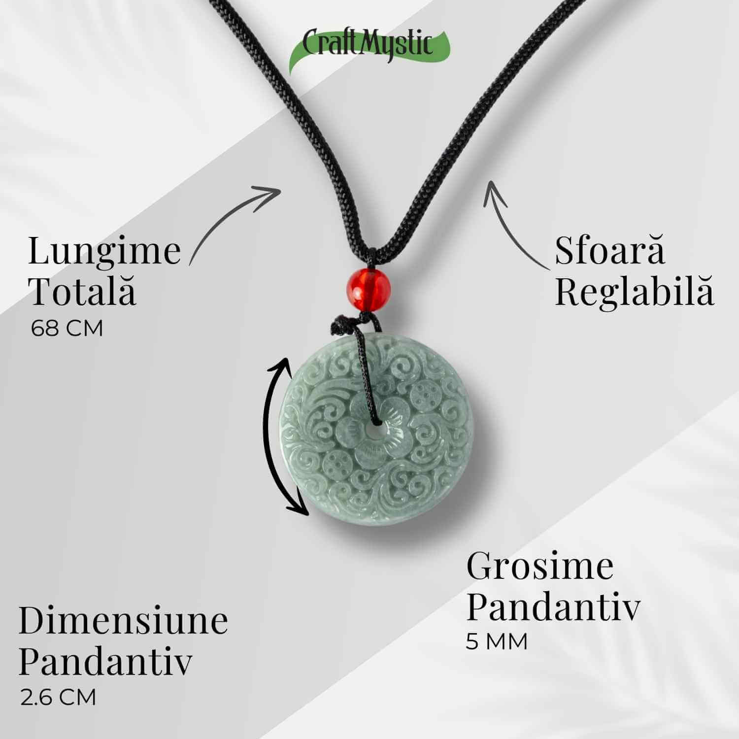 Colierul cu jad natural sculptat îți aduce o stare de liniște și protecție, echilibrându-ți energia și ajutându-te să depășești momentele de stres. Piatra de jad este recunoscută ca un simbol al armoniei și norocului, fiind o sursă de forță și stabilitate.