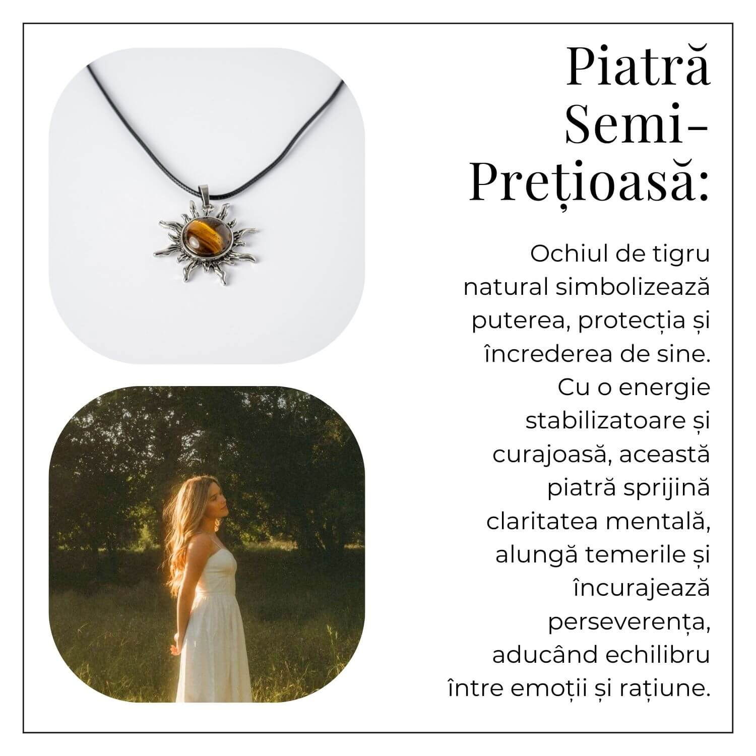 Poartă Putere și Vitalitate – Colier Soare cu Ochi de Tigru Natural și lasă energia protectoare a pietrei să-ți lumineze drumul, oferindu-ți încredere și curaj în fiecare zi.
