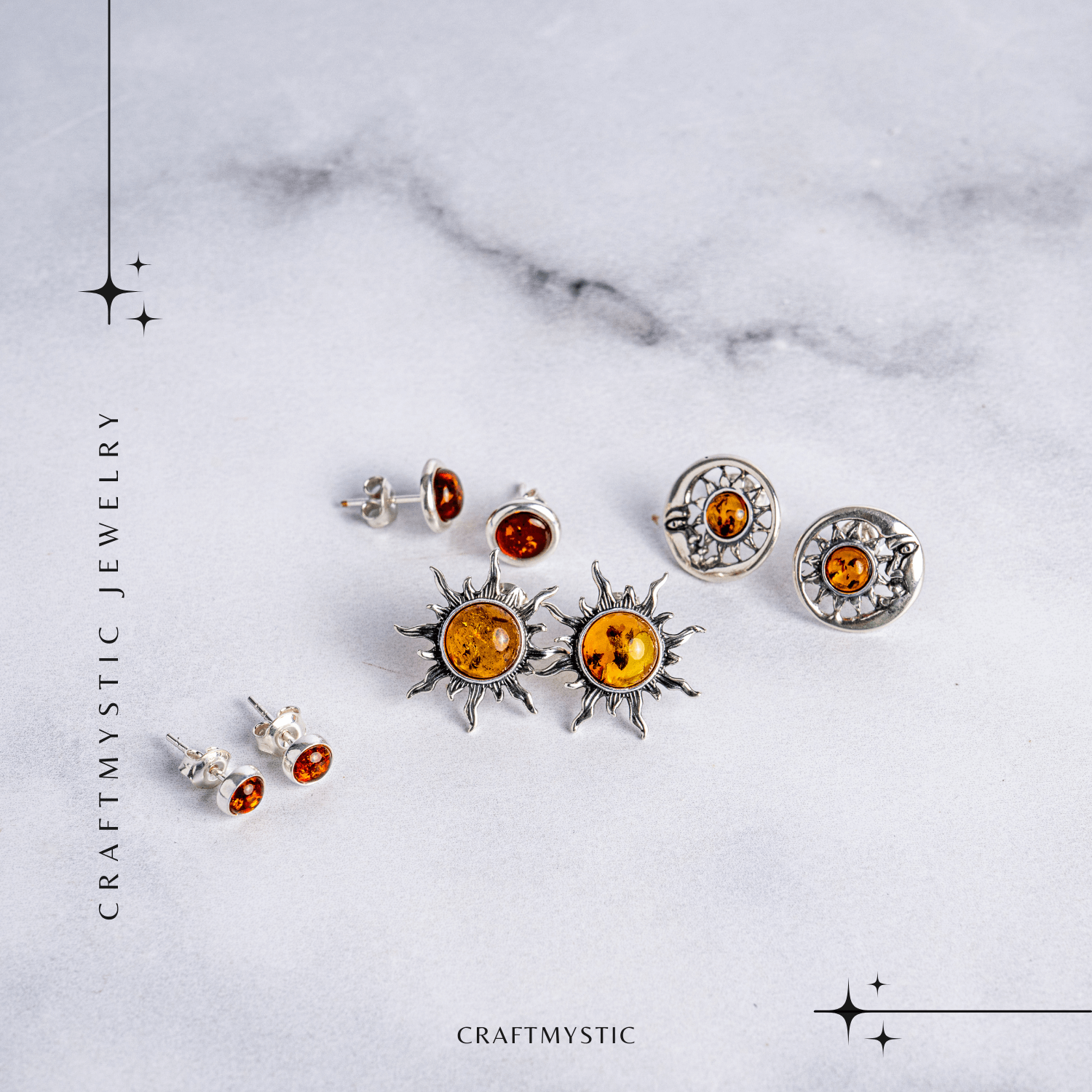 ✔ Montură: Argint 925 + chihlimbar natural (nuanță roșcat-aurie)