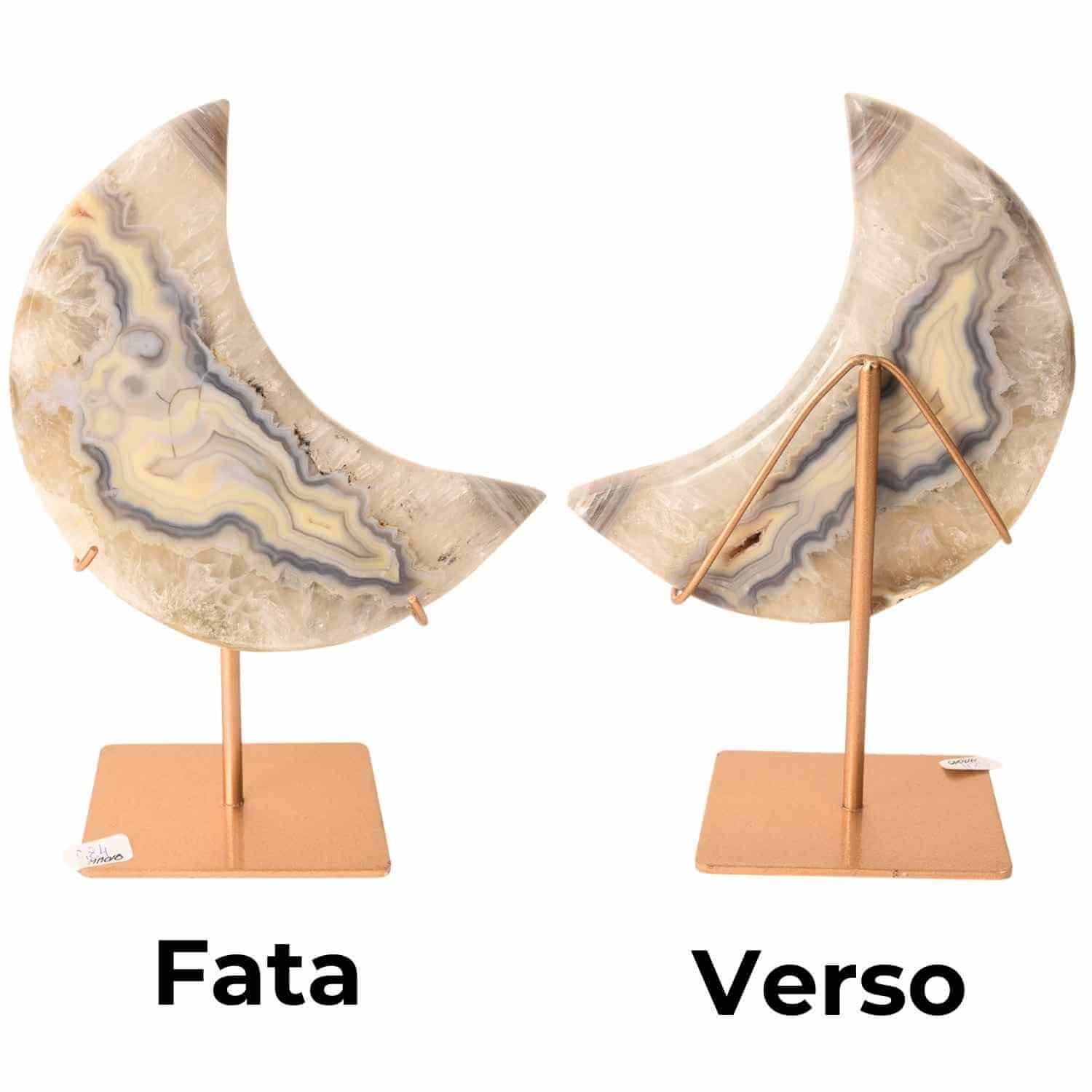 Această semilună din agat bandat natural este o piesă unicat, sculptată manual în Brazilia, în care desenul concentric format natural devine elementul central. Fiecare linie spune povestea timpului geologic, fără intervenții artificiale, fără colorare, fără compromisuri.
