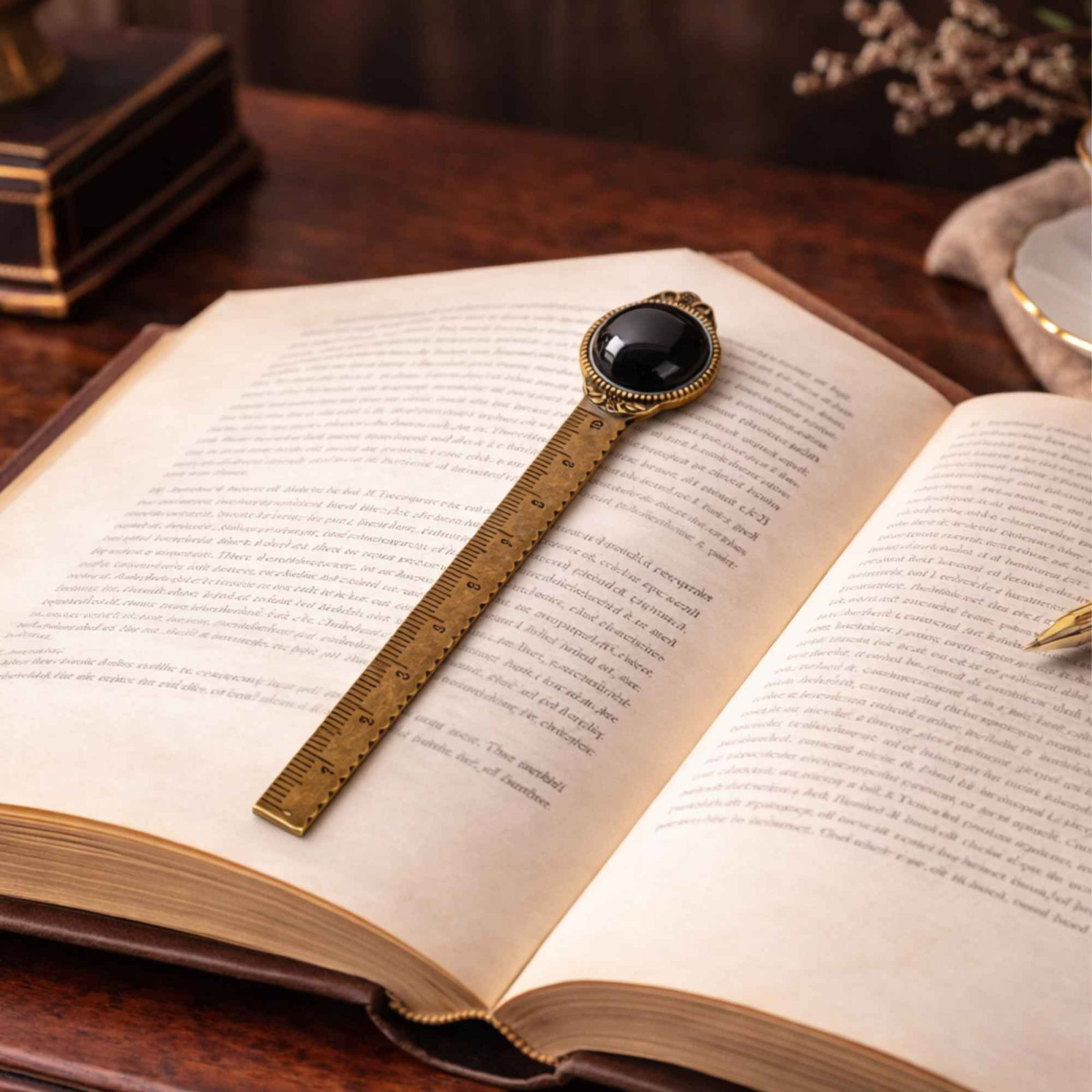 Acest semn de carte îmbină forță profundă a obsidianului natural cu elegantă vintage a monturii din alamă. Este o piesă practică și simbolică în același timp – un talisman discret așezat între paginile cărților tale preferate.