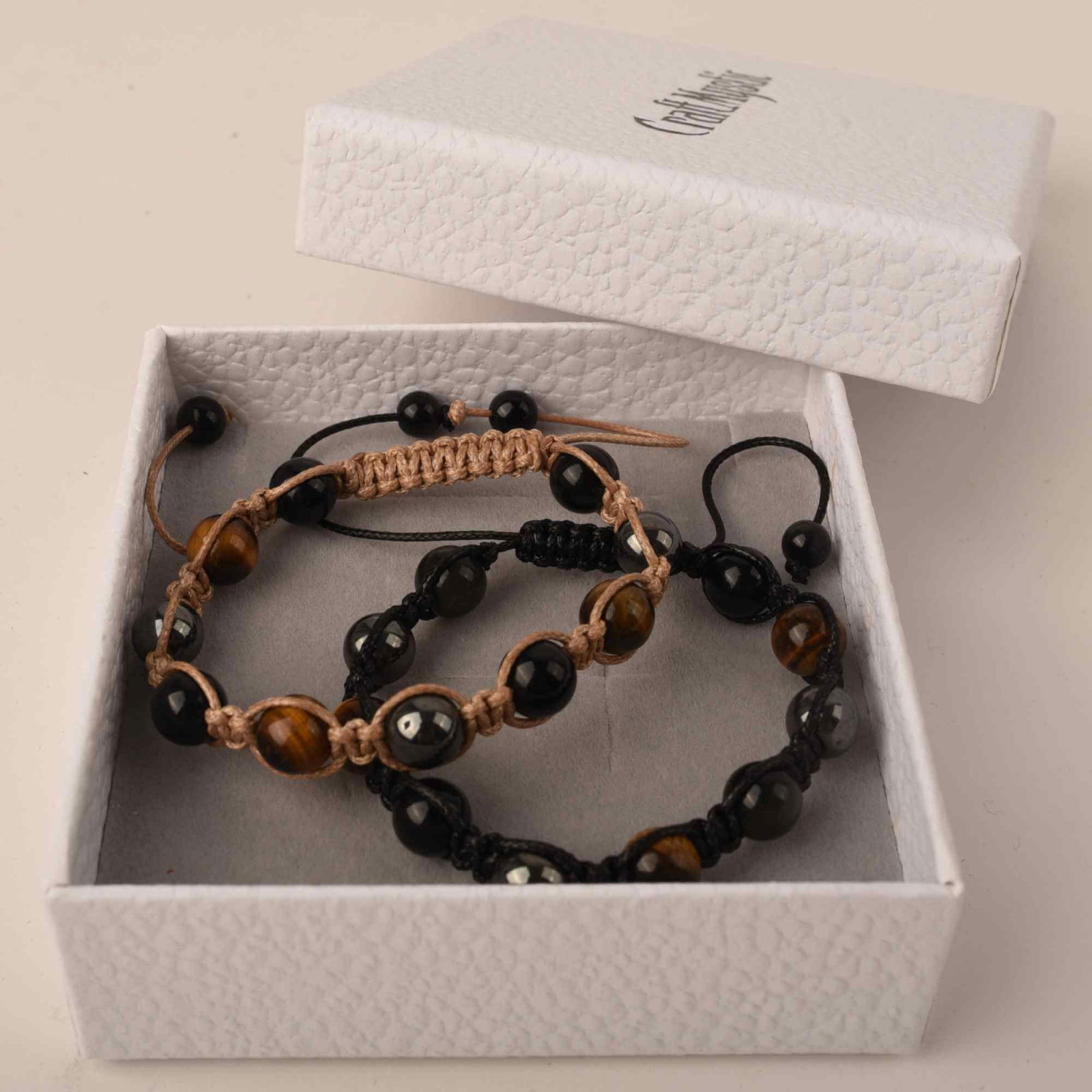 Bijuteriile vin în săculeț de satin sau în cutie CraftMystic. Produsele decorative sunt protejate cu folie cu bule; unele includ cutii cadou.