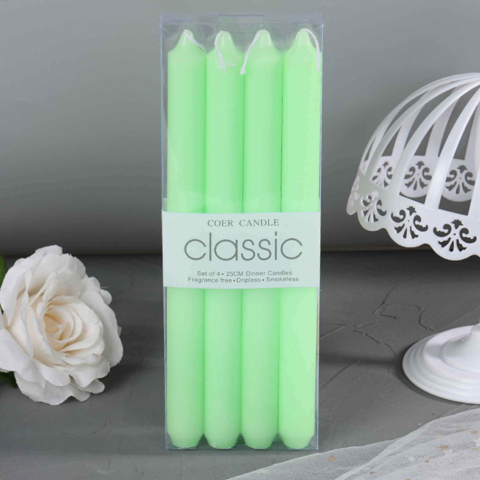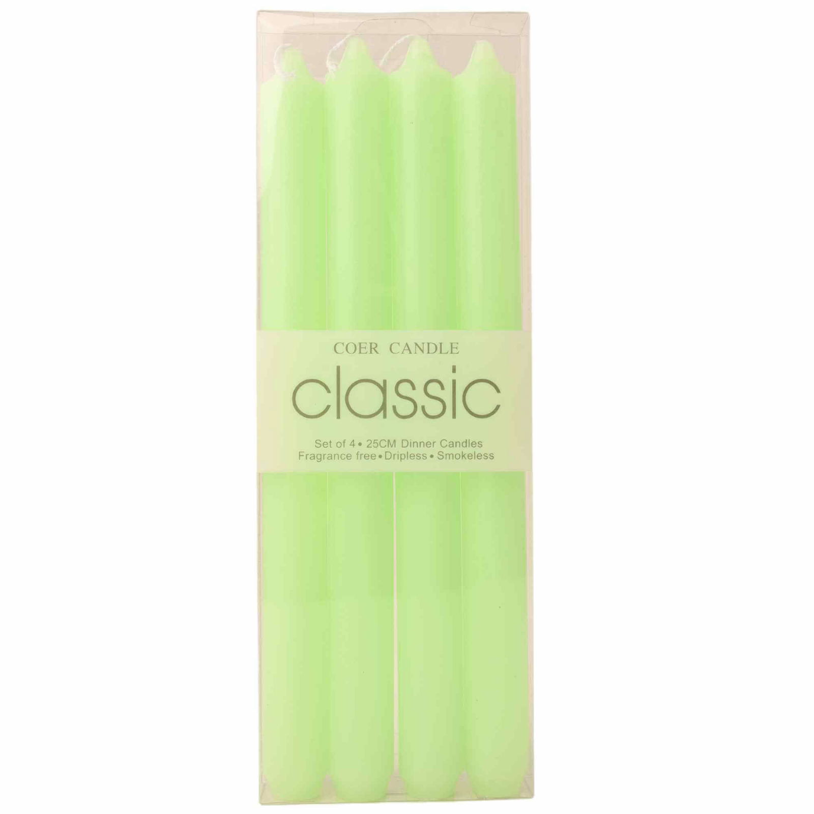 Set 4 Lumanari drepte verde lime de 25 cm - Lumanari fara picurare si fara parfum - Perfecte ca lumanari pentru cina, ocazii speciale