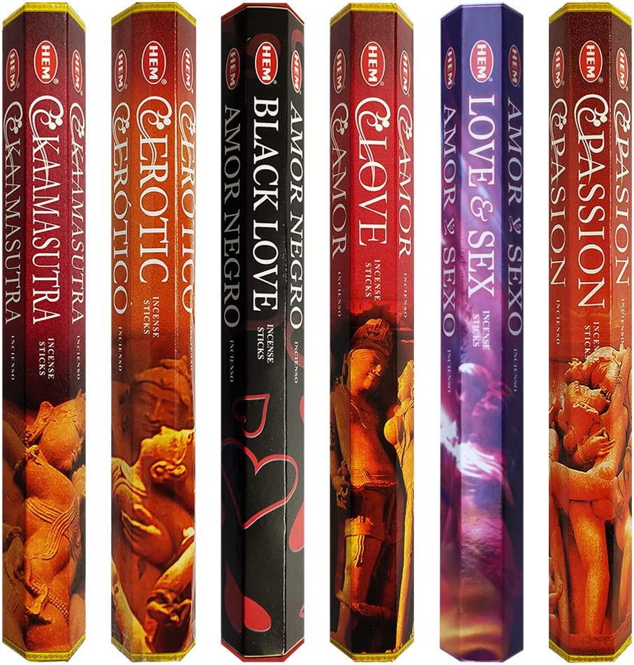 • Acest set include 6 parfumuri HEM cu tematica dragoste, fiecare pachet contine 20 betisoare. Suportul pentru betisoare este, de asemenea, inclus. Pachetul include urmatoarele varietati de parfumuri: Kaamasutra|Erotic|Black Love|Love|Love & Love|Passion fragrances.