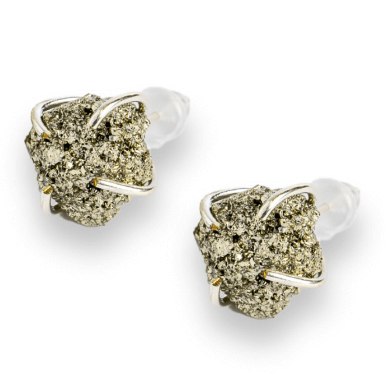 Cercei argintii cu Pirita bruta - Abundenta, incredere si protectie energetica