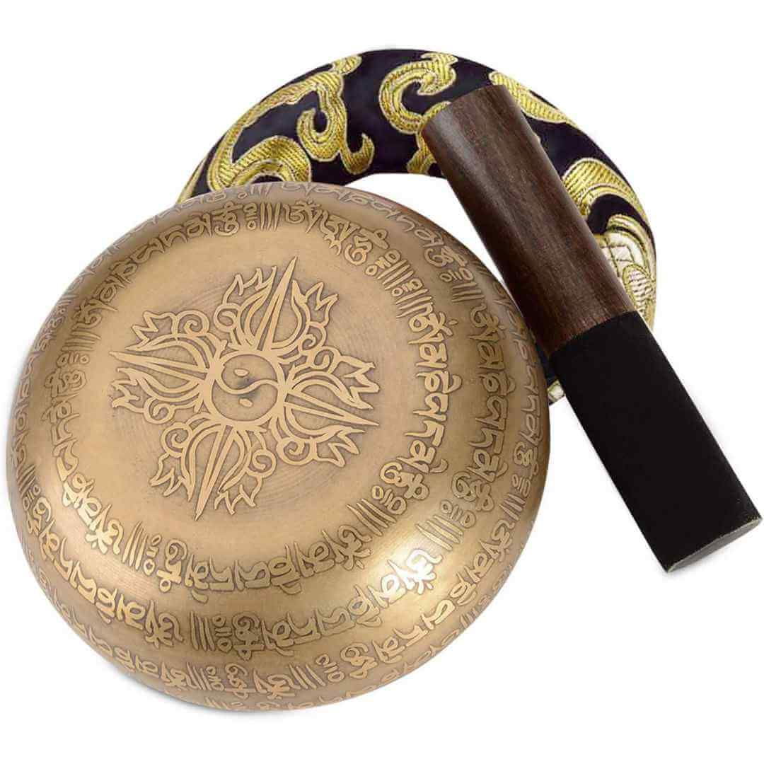 - Calitate autentica: Acest set de bol tibetan este realizat din alama autentica si are o gravura mantra pe suprafata, adaugandu-i o nota de autenticitate si frumusete. Fiecare bol este unic in designul sau si emite sunete profunde si armonioase in timpul meditatiei;