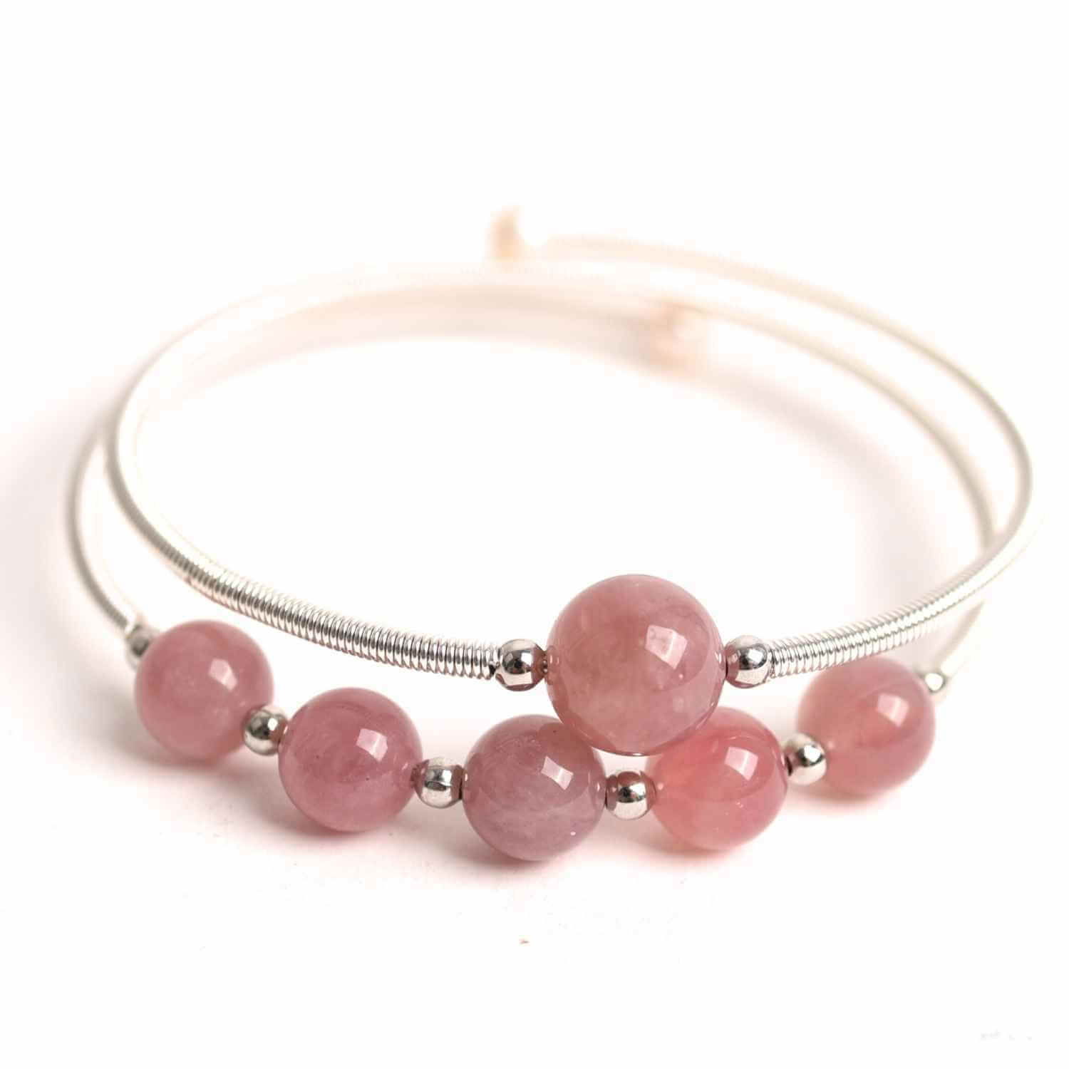 Bratara dubla metalica argintie si Cuart Roz natural pentru calm si claritate mentala
