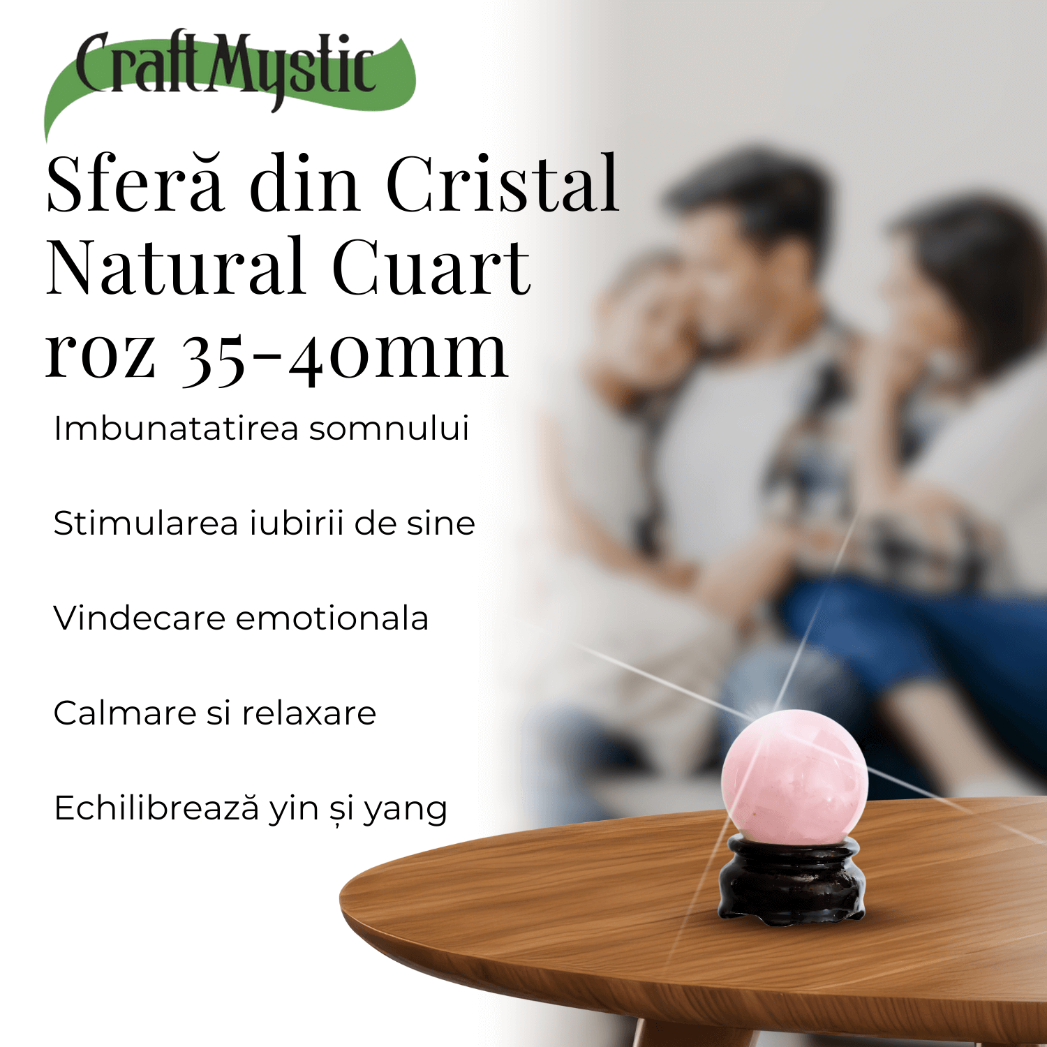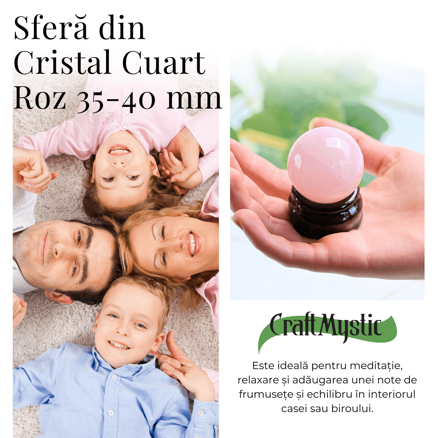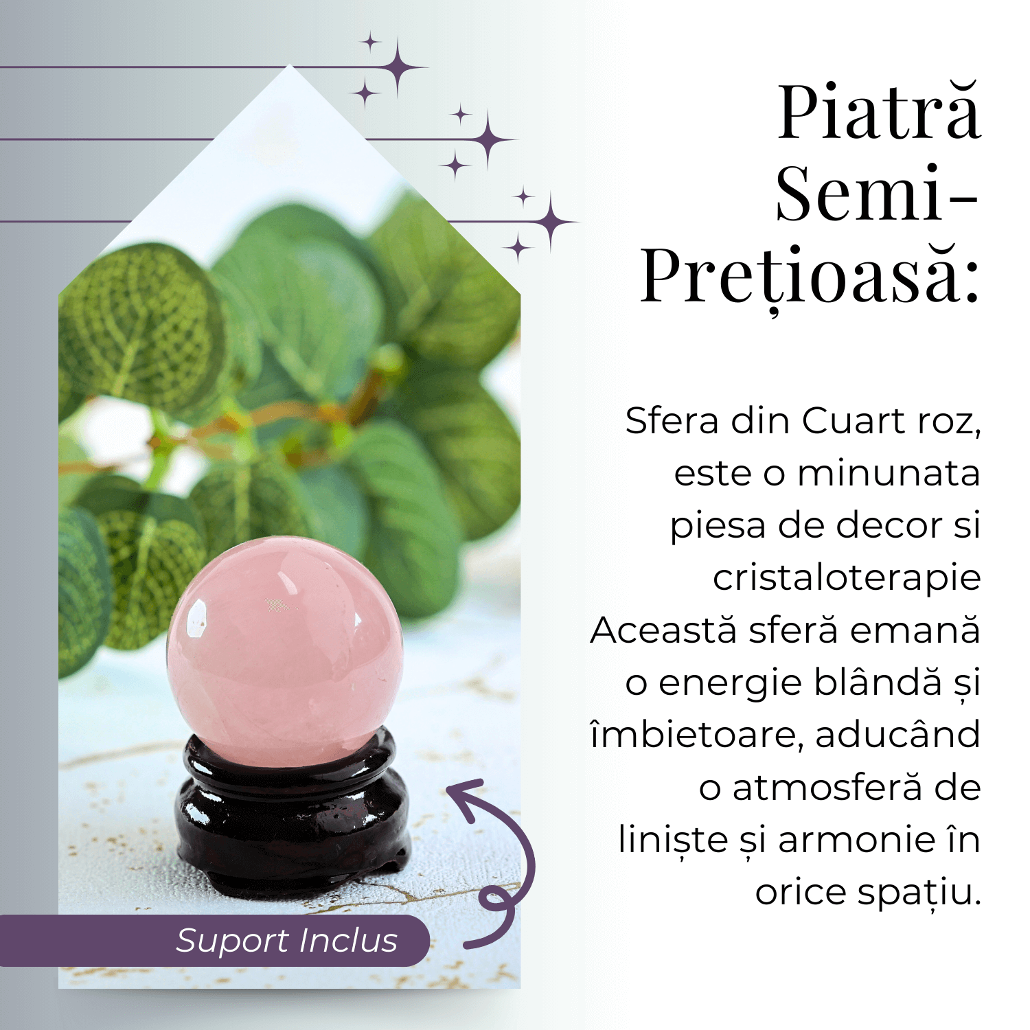 Îmbrățișează energia pozitivă și aduce armonie în spațiul tău cu această sferă de Cuart Roz!
