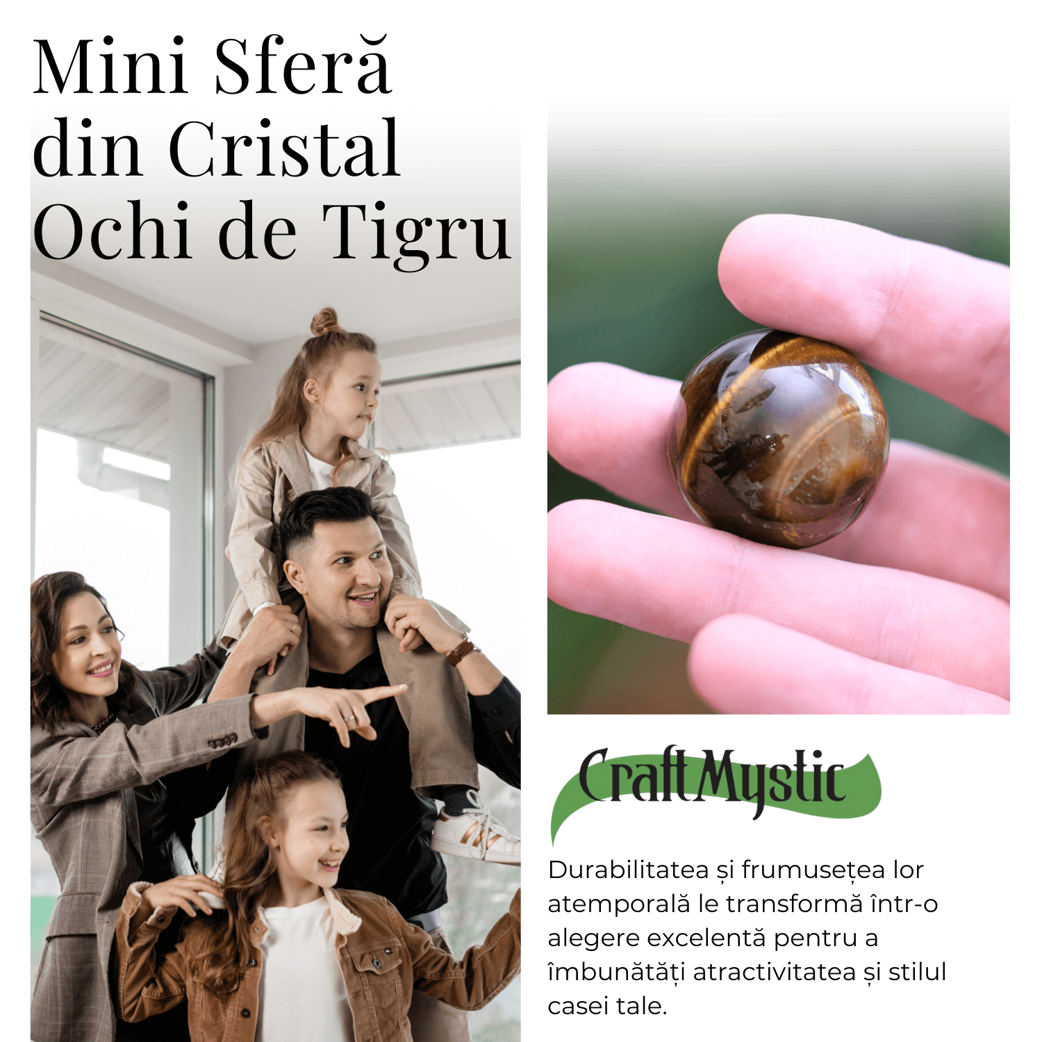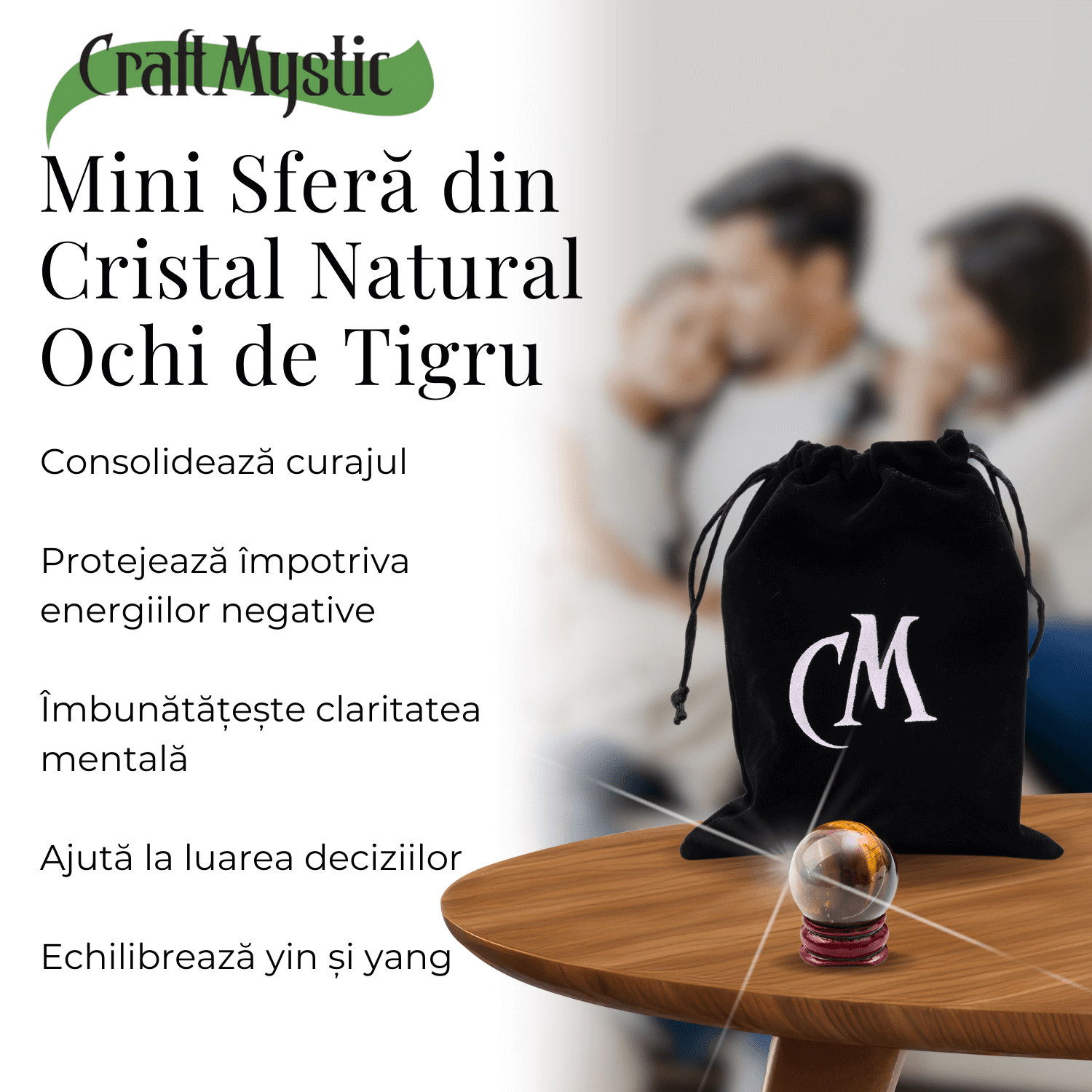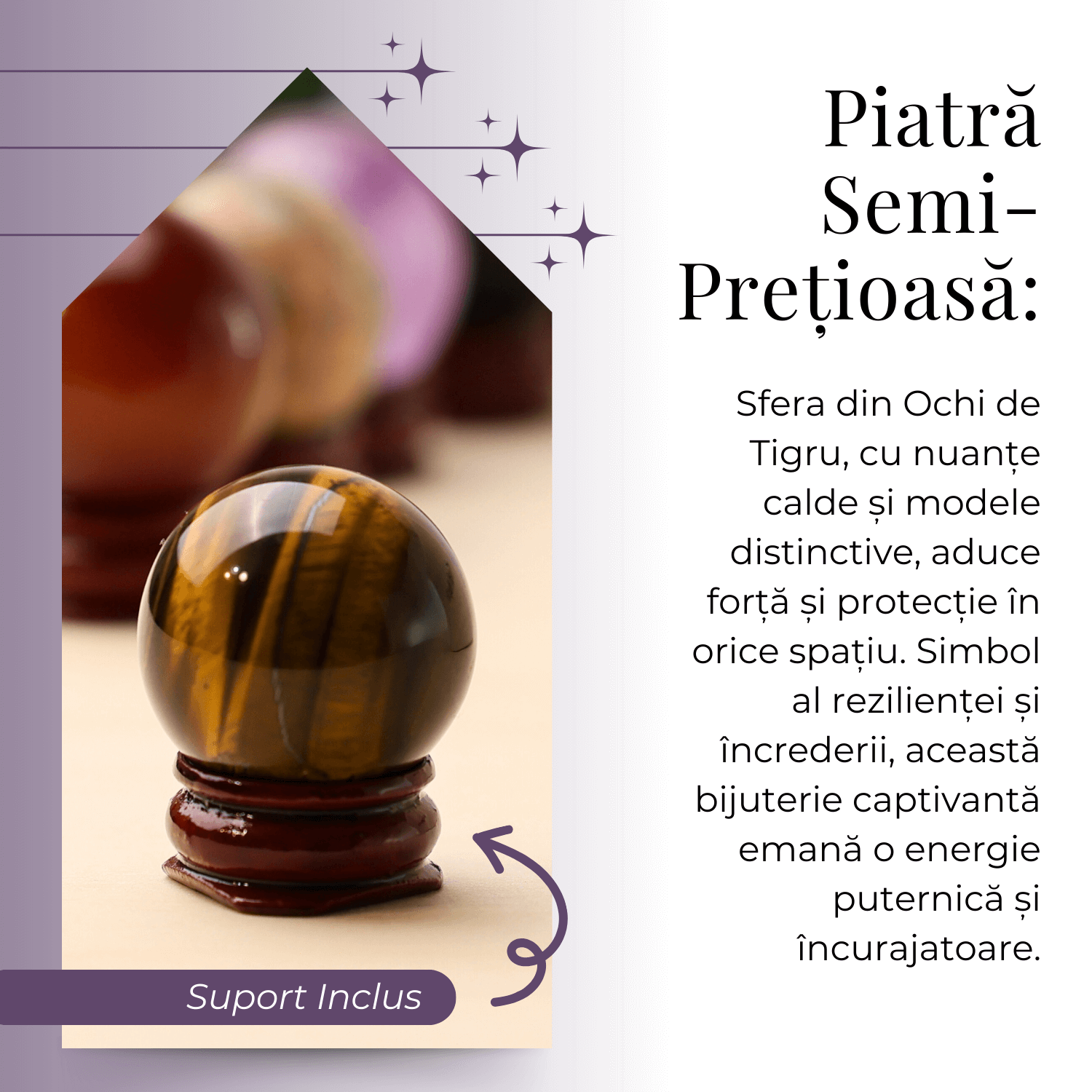 Aceasta sfera din ochi de tigru natural este un element decorativ impresionant si un instrument spiritual puternic. Ochiul de tigru este renumit pentru proprietatile sale de a oferi protectie, a spori curajul si a stimula luarea deciziilor. Ideala pentru cei care doresc sa adauge un element de forta si determinare in viata lor.