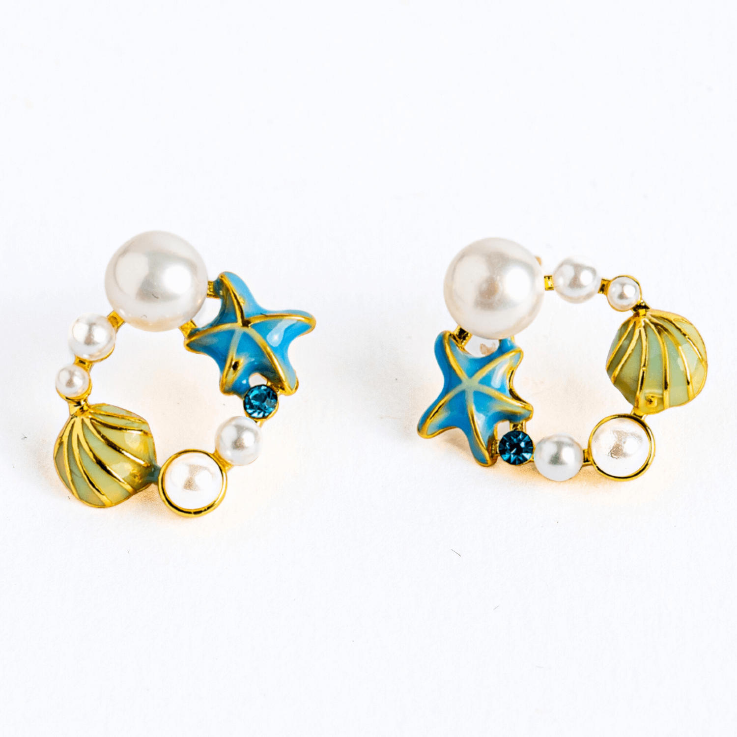 Material: cupru placat auriu, email decorativ, perle naturale