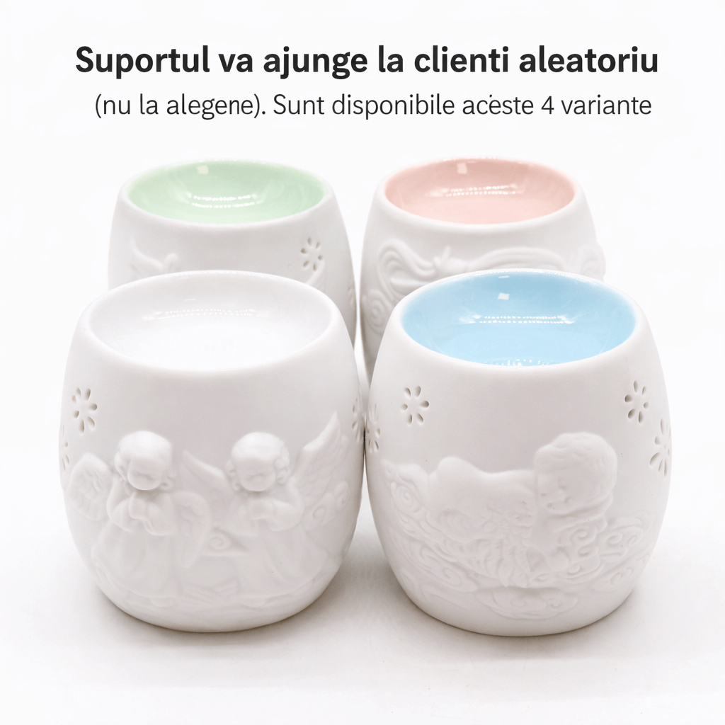 Aceasta lampa de aromaterapie din ceramica, decorata cu simbolul ingerului, creeaza un spatiu de liniste, protectie si relaxare profunda. Ingerul este un simbol universal al veghei divine, al puritatii si al sigurantei energetice, fiind asociat cu prezenta unei energii blande care aduce pace si confort sufletesc.