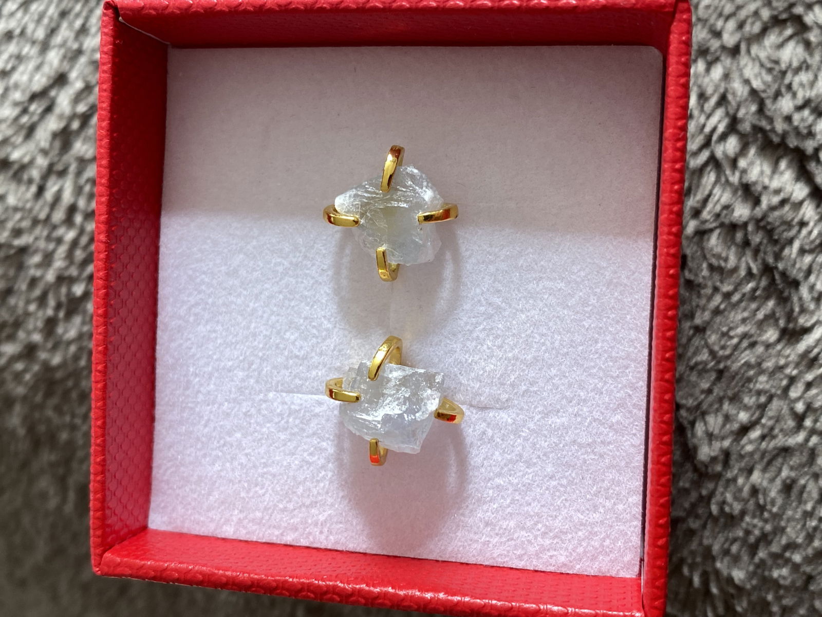 Cum să aduci un sentiment absolut unic de claritate mentală și liniște profundă cu acești cercei incredibili din acvamarin natural brut și finisaj auriu elegant.