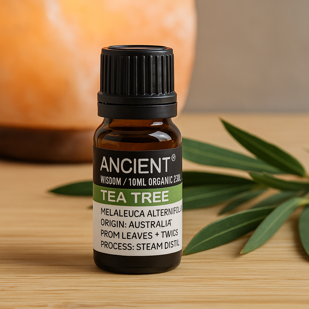 1 × Ulei esențial organic Tea Tree 10 ml – aromă purifiantă, ideală pentru difuzor și îngrijire locală (numai diluat), pentru o atmosferă curată și o rutină de frumusețe mai eficientă.