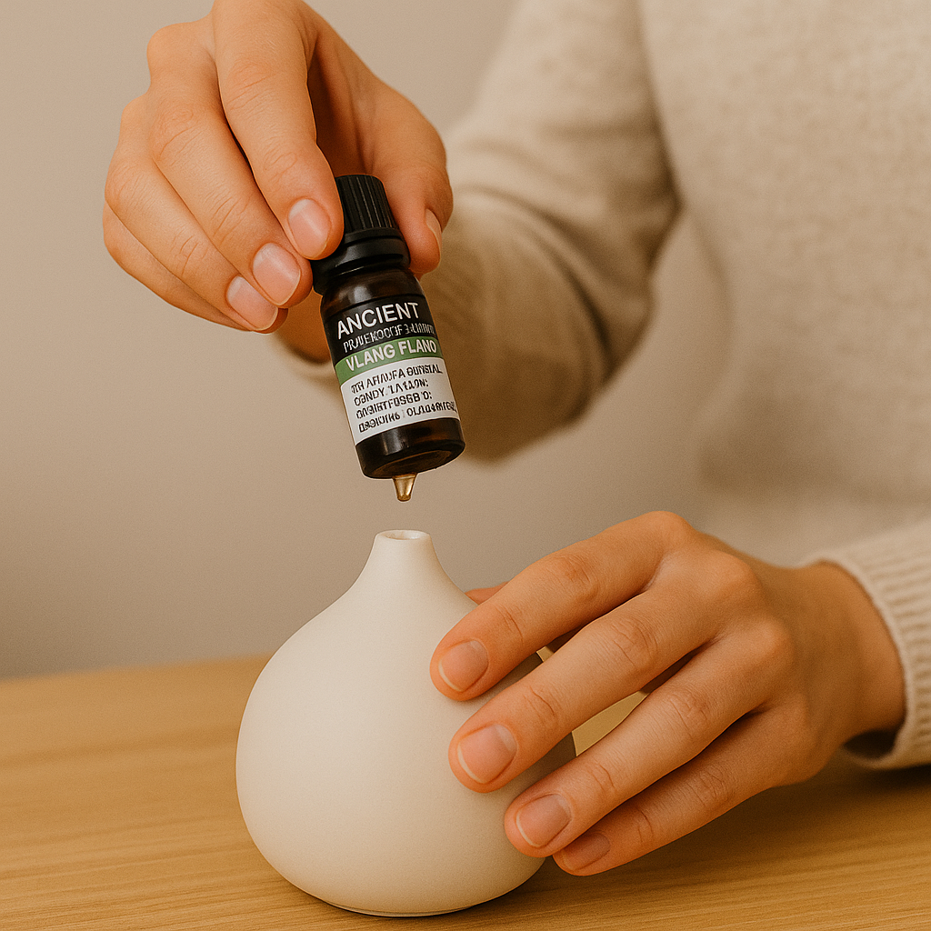 Difuzor: 2–4 picături/100 ml apă (Ylang este foarte puternic).
